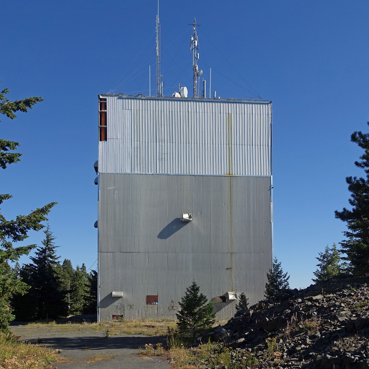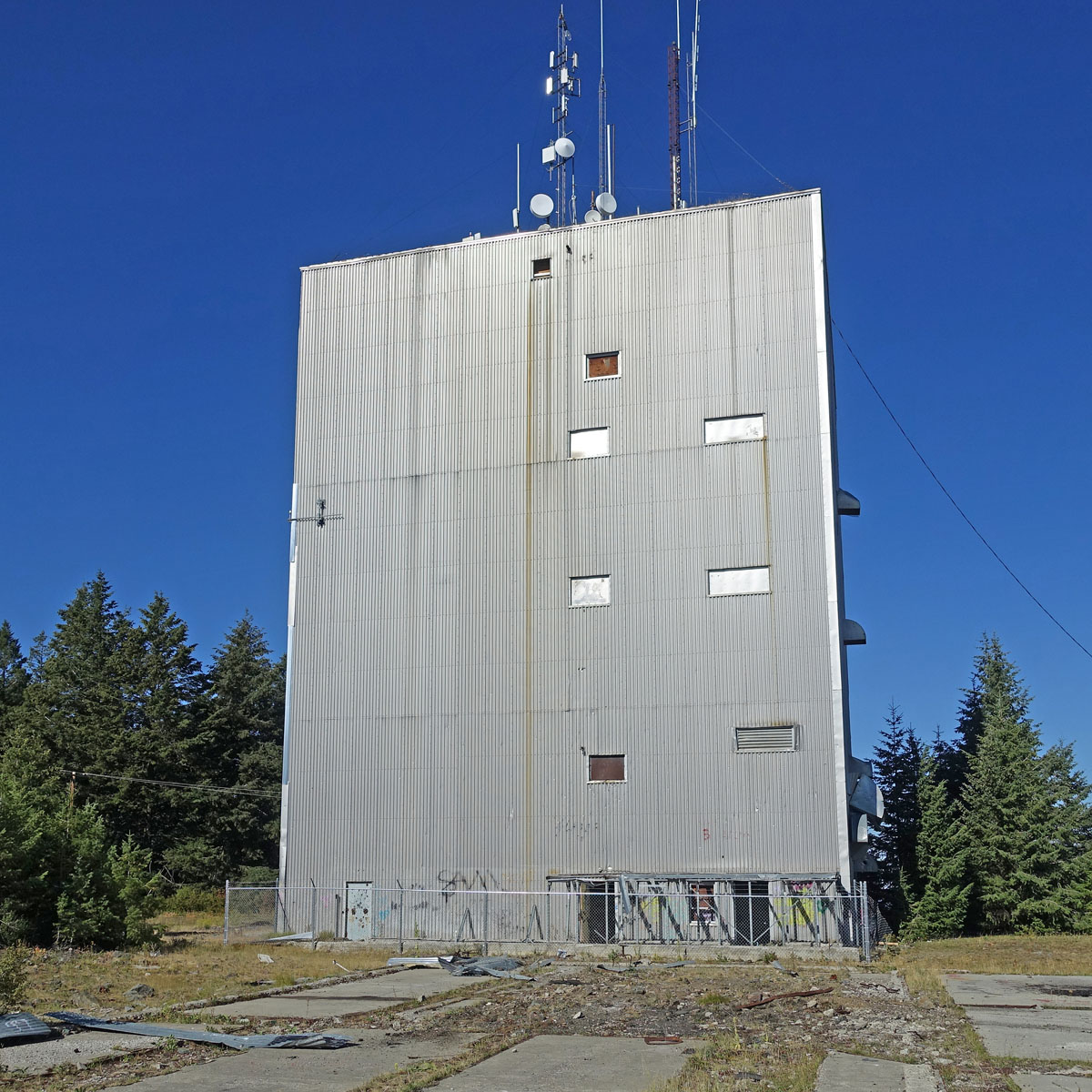 This property was assigned to Air Defense Command on 21 December 1955. It was listed in the 1956 USAF Installations Directory with identifier SM-150; this was changed to Z-150 on 1 July 1963. The property was inactivated on 1 March 1965. I visited the former operations site in August 2025. The former support facilities are further down the hill and now occupied by a prison. The former housing area is at the edge of town and I drove past it without stopping for photos.General view