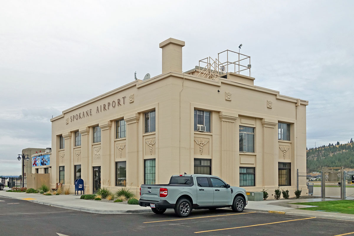 This was a joint-use field, serving as a military airfield and also the Spokane Municipal Airport. First military use was in 1927 or earlier, and it was declared surplus in 1944.Pre-war terminal building