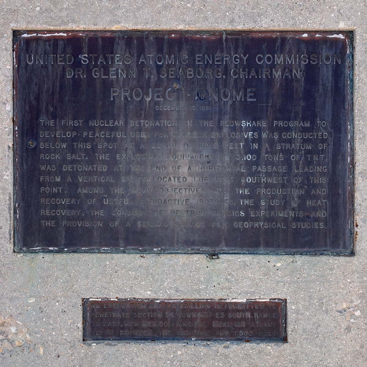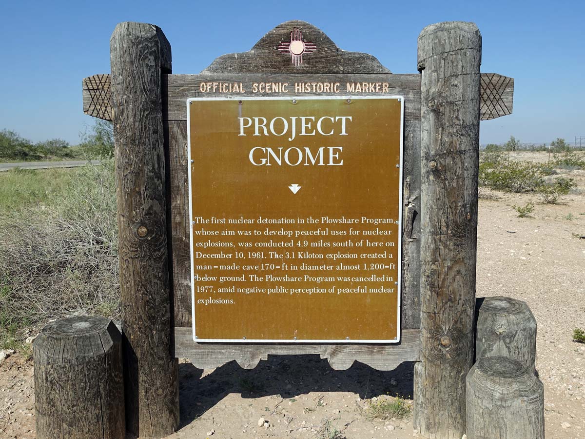 Like Gasbuggy, Gnome was part of Operation Plowshare. The Atomic Energy Commission detonated a nuclear device here on 10 December 1961 (six years before Gasbuggy).General view