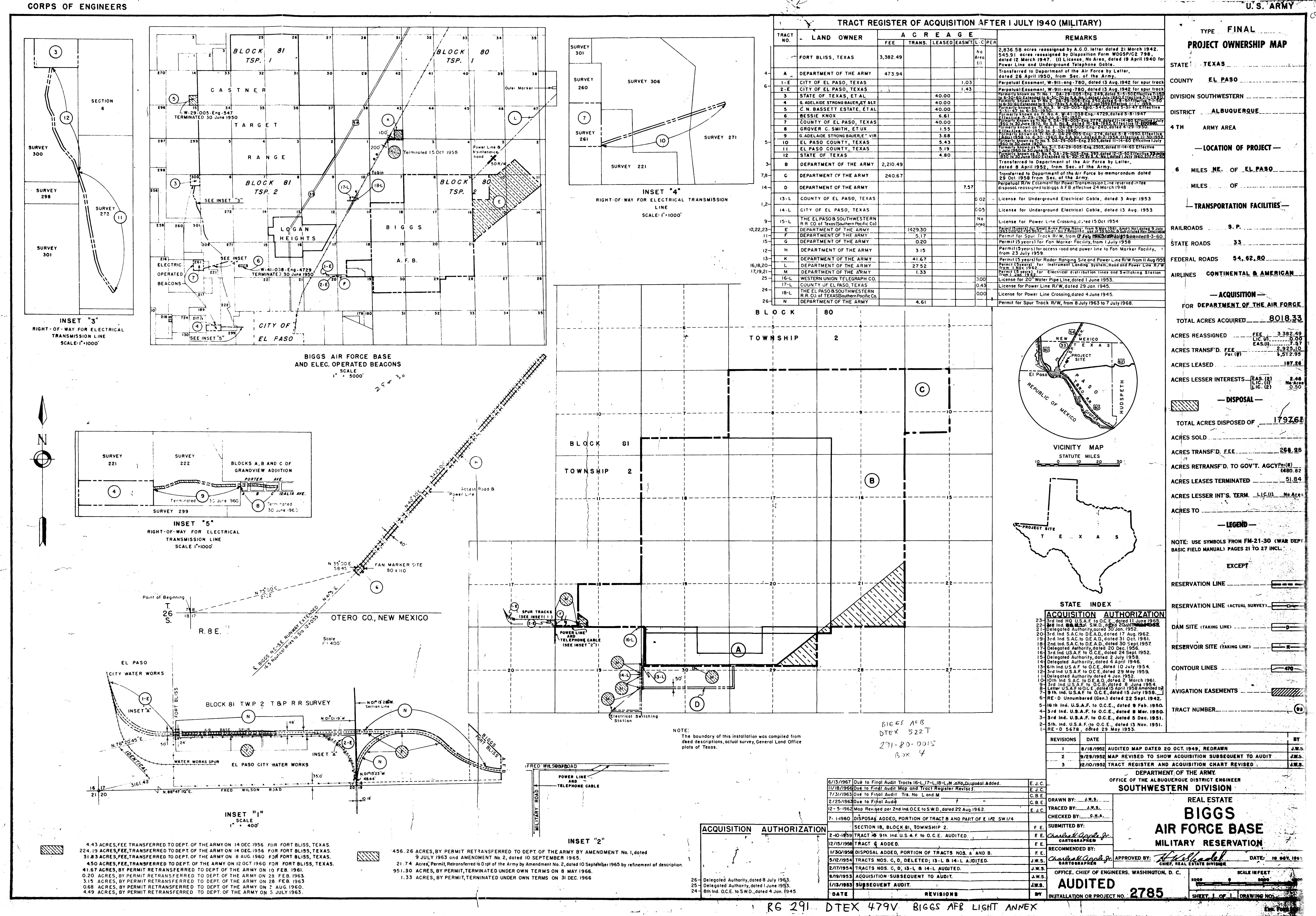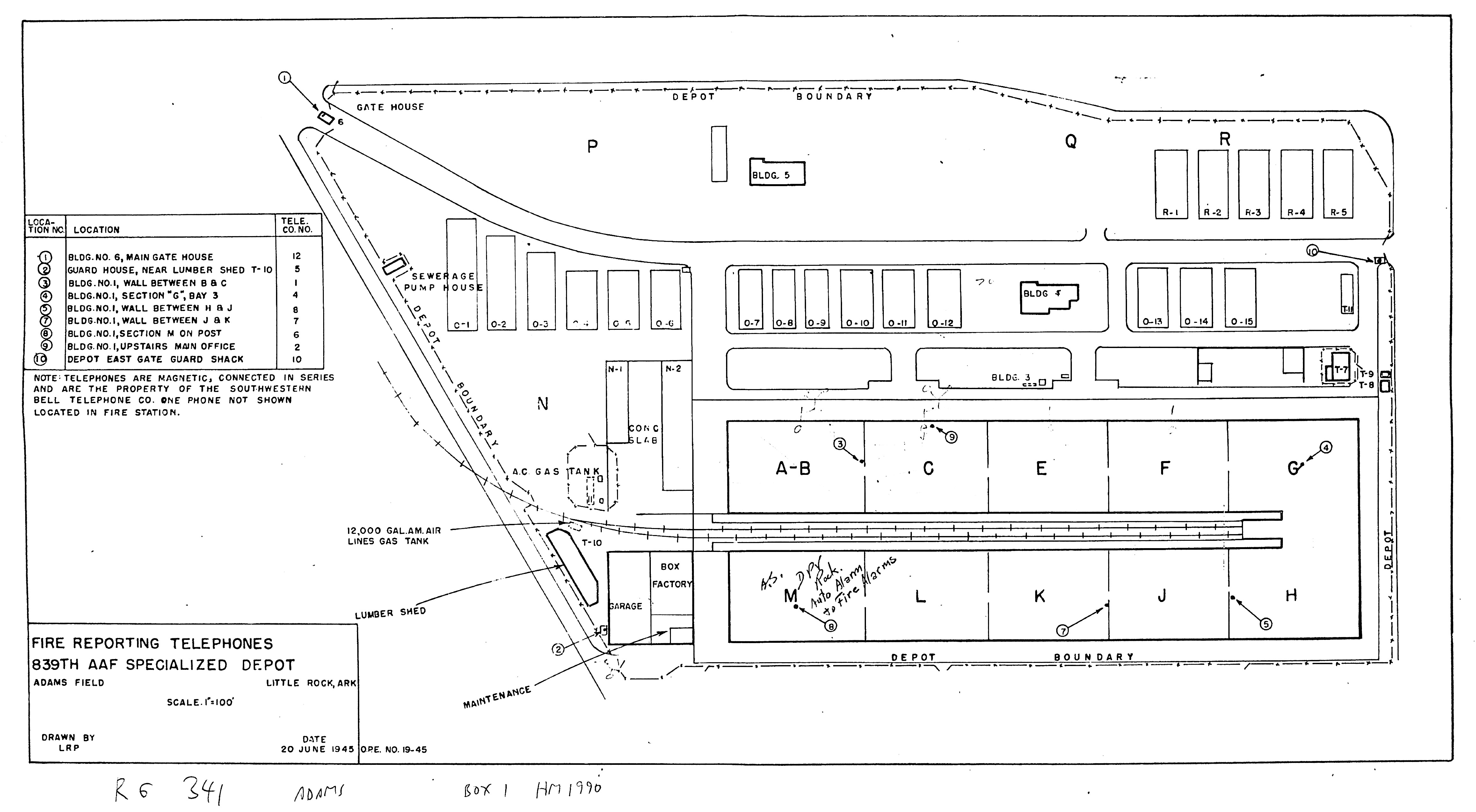 These are large format documents I obtained either from active bases or major commands under the Freedom of Information Act (FOIA), from the National Archives and Records Administration (NARA), from the U.S. Army Corps of Engineers (CoE), or from other independent researchers. NARA-SW indicates NARA Southwest Region (Fort Worth); NARA-RM indicates NARA Rocky Mountain Region (Denver). 839 AAF Special Depot AR, Fire Reporting Telephones, 19450620. NARA-SW.