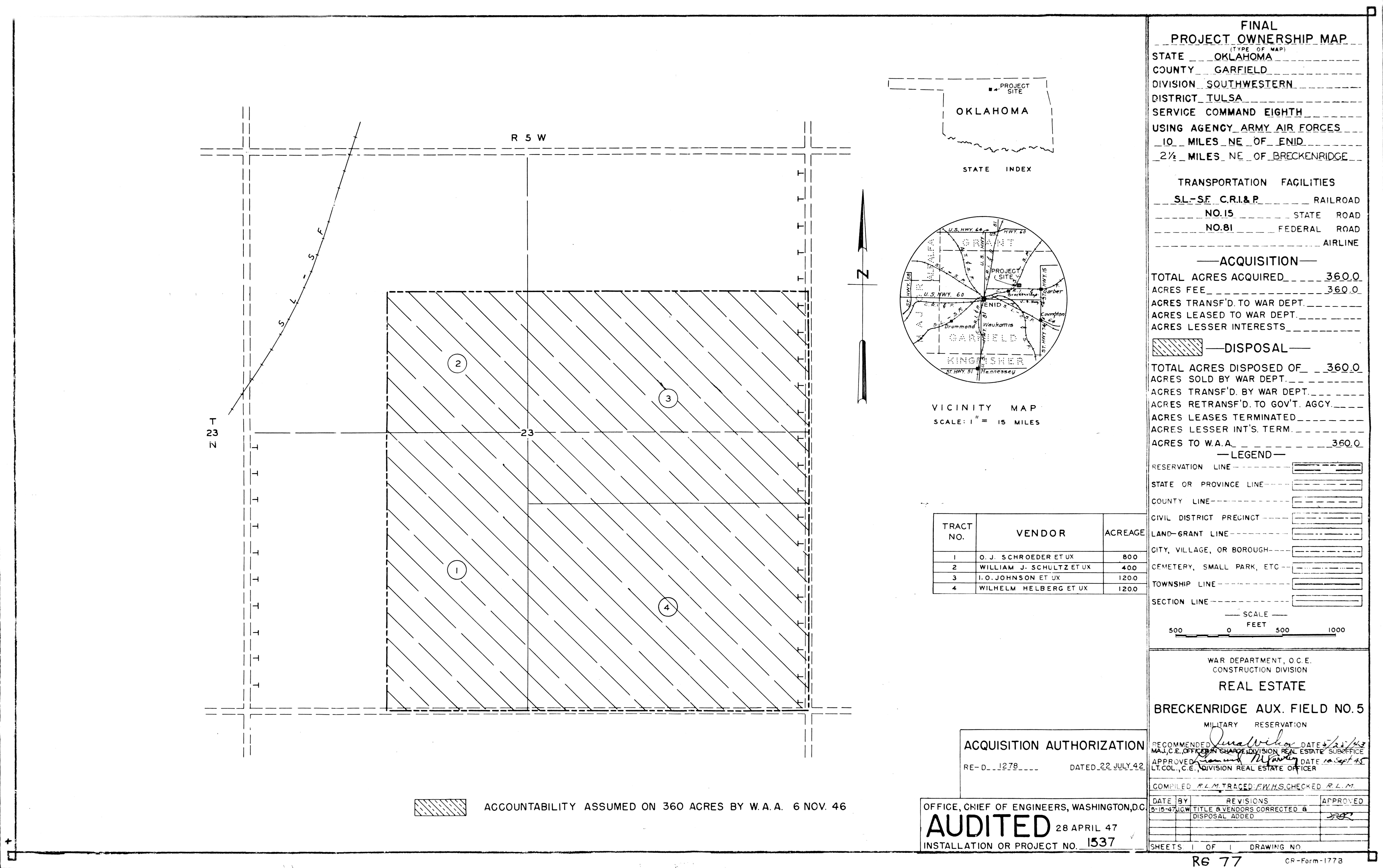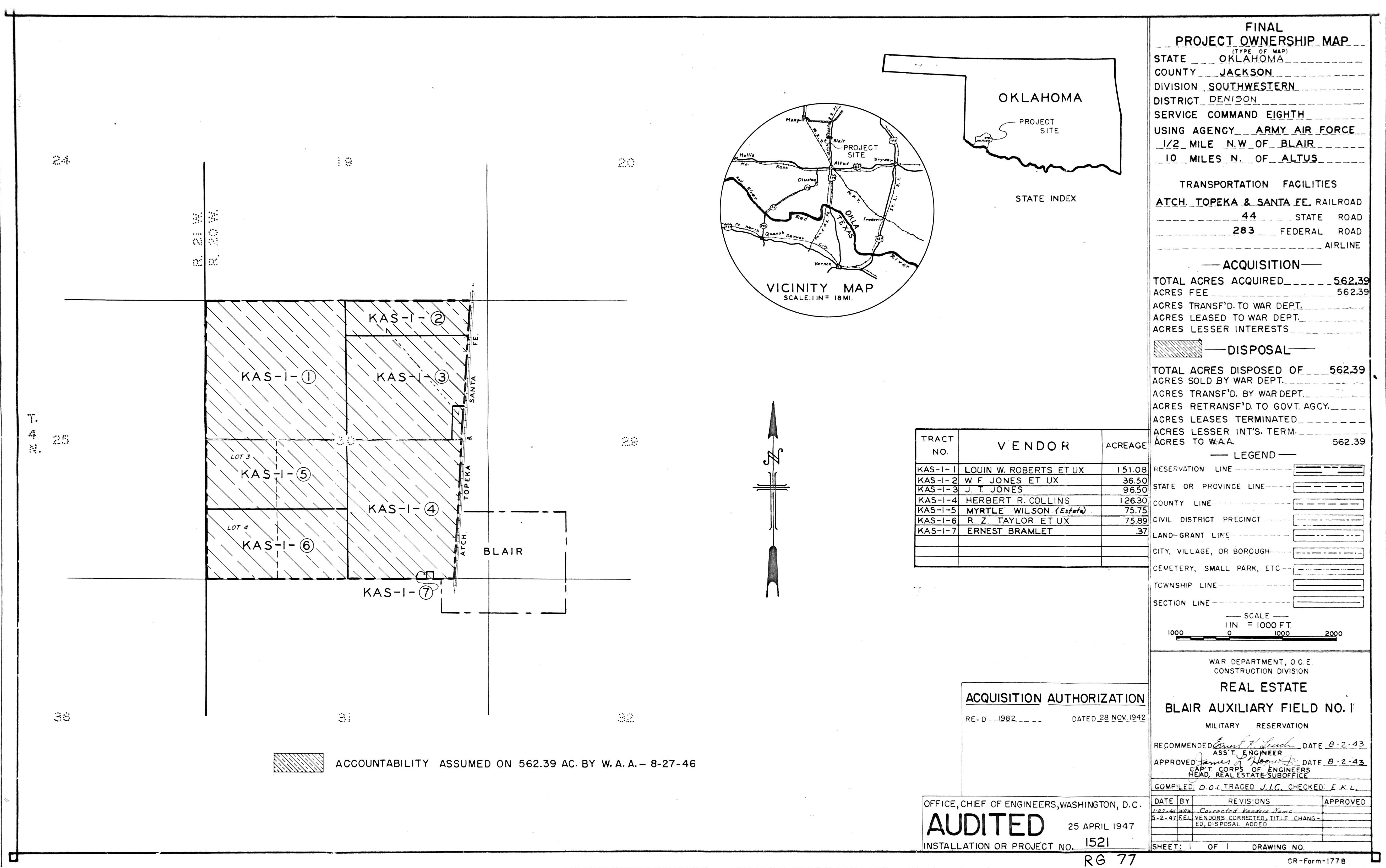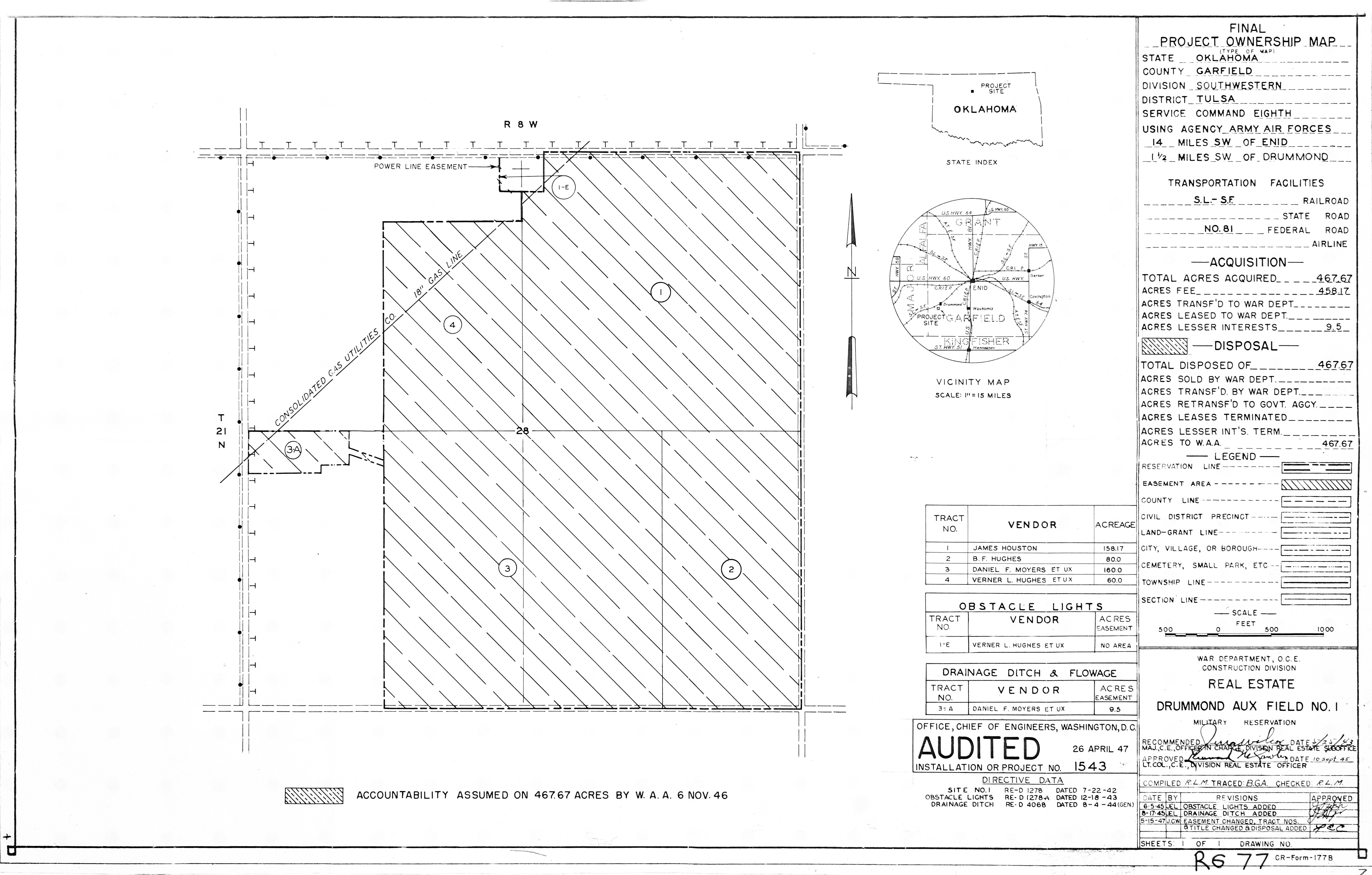 839 AAF Special Depot AR, 12th Ferrying Service Station, 19451002. NARA-SW. Adams Field AR, Real Estate, 19440504. NARA-SW. Air Force Plant No. 3 OK, Tulsa Aircraft Assembly Plant, 19440628. NARA-SW.