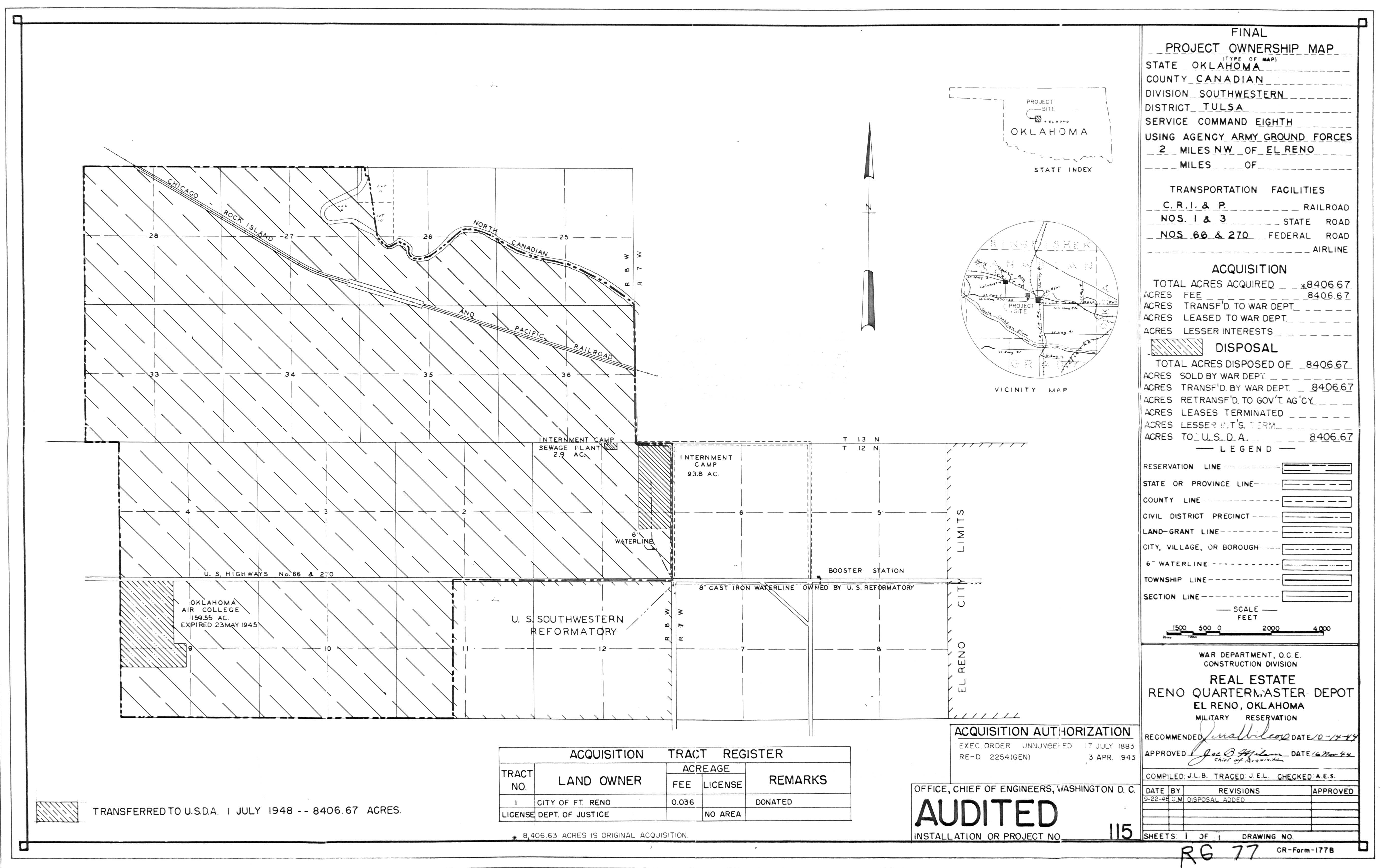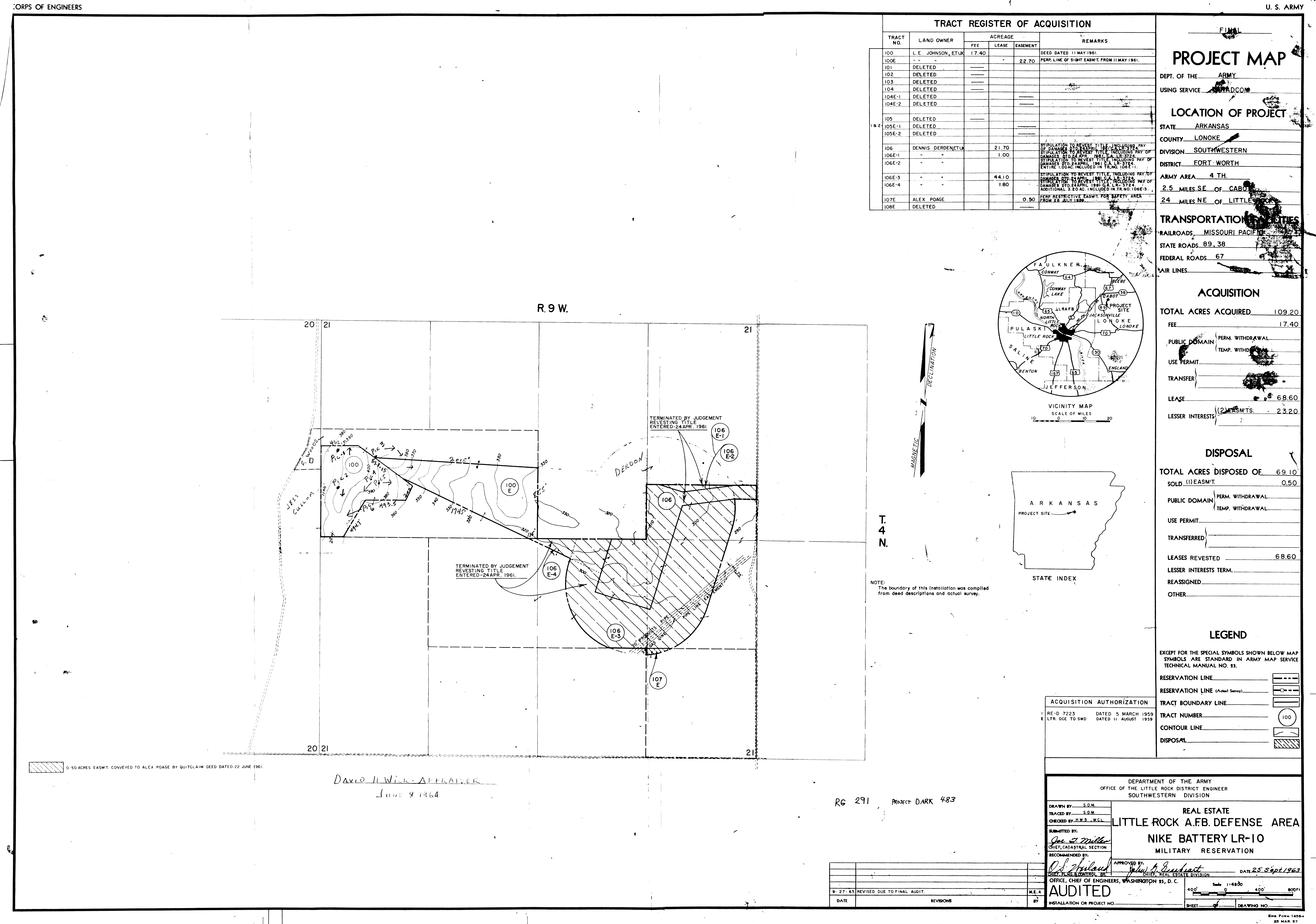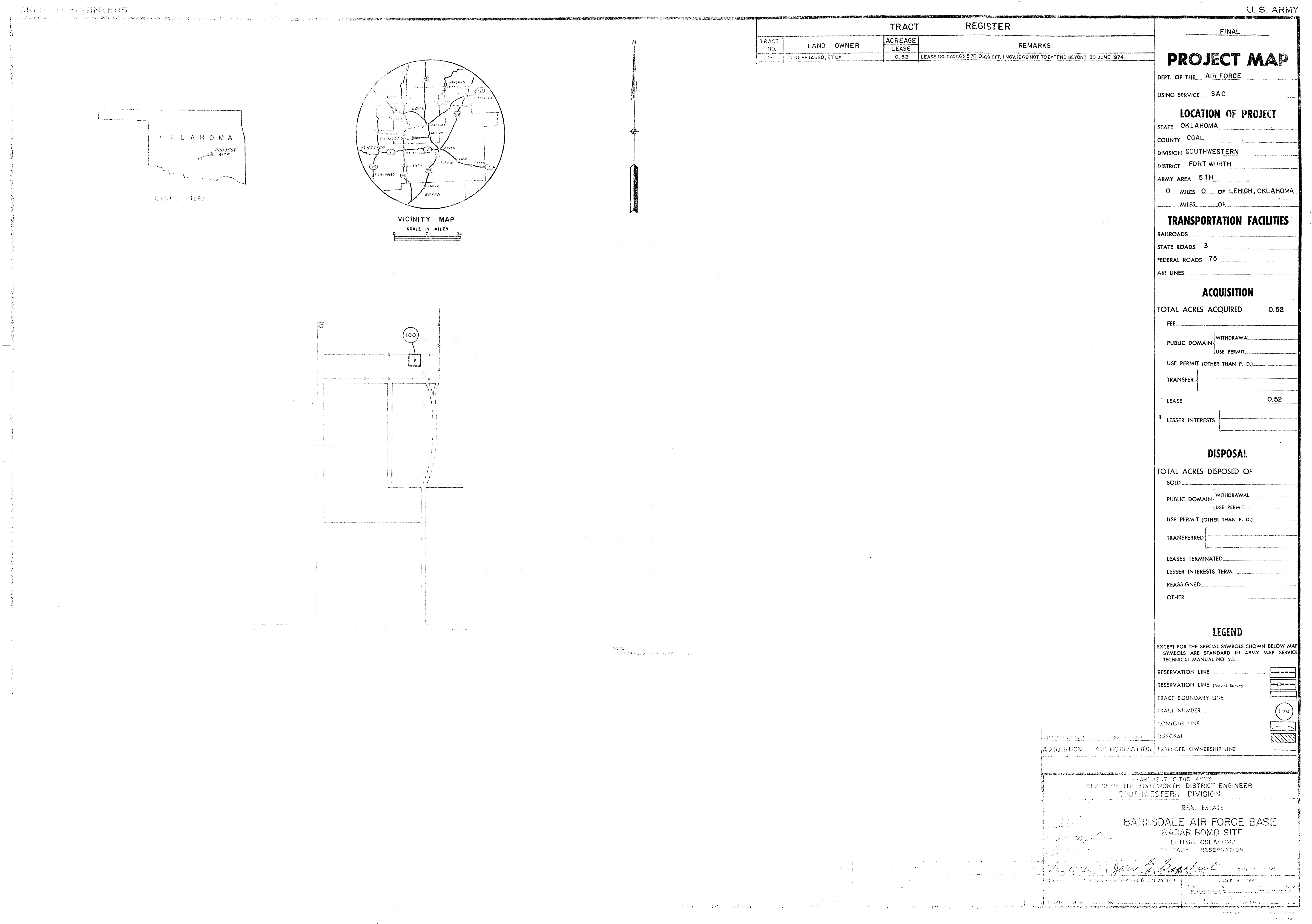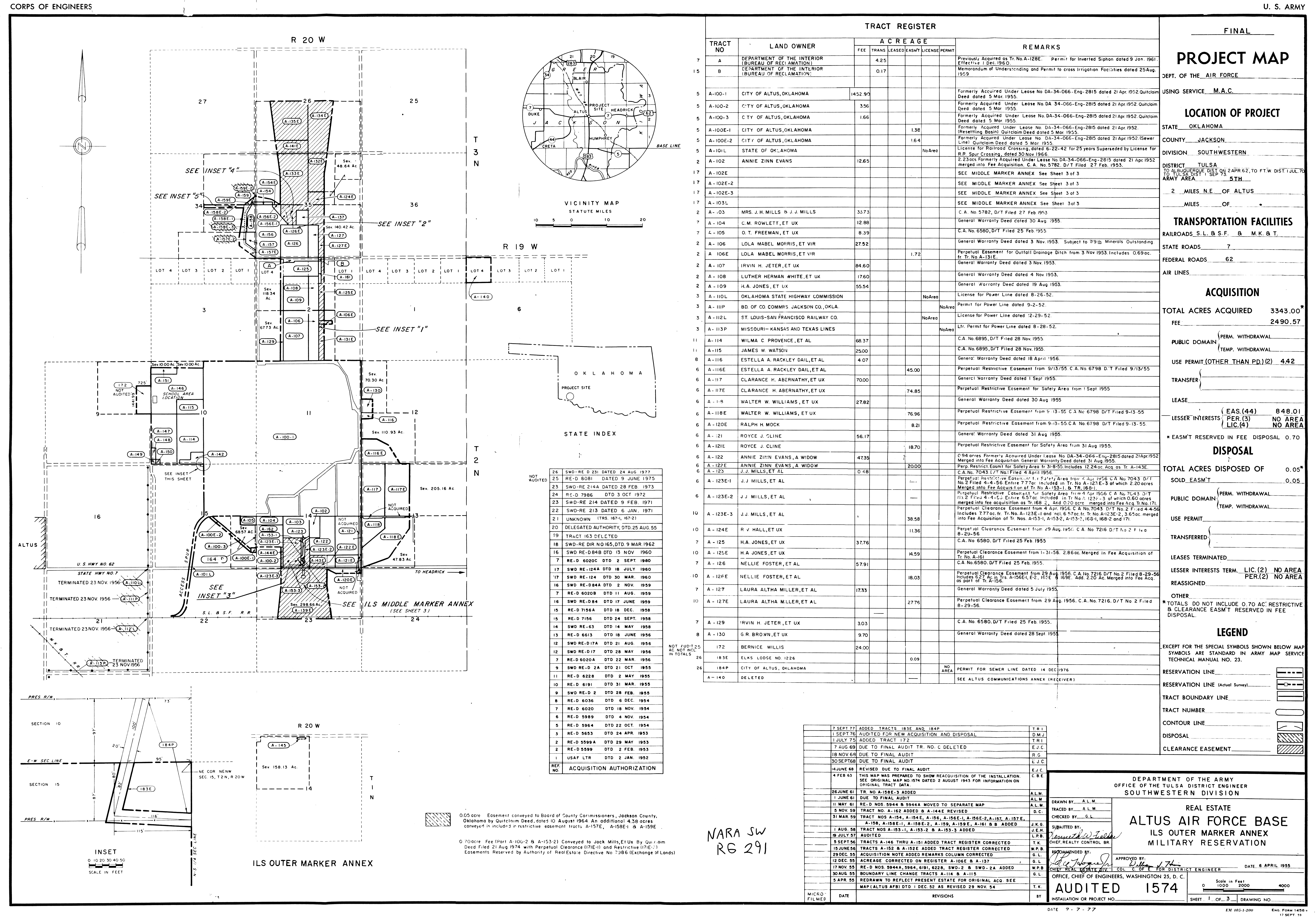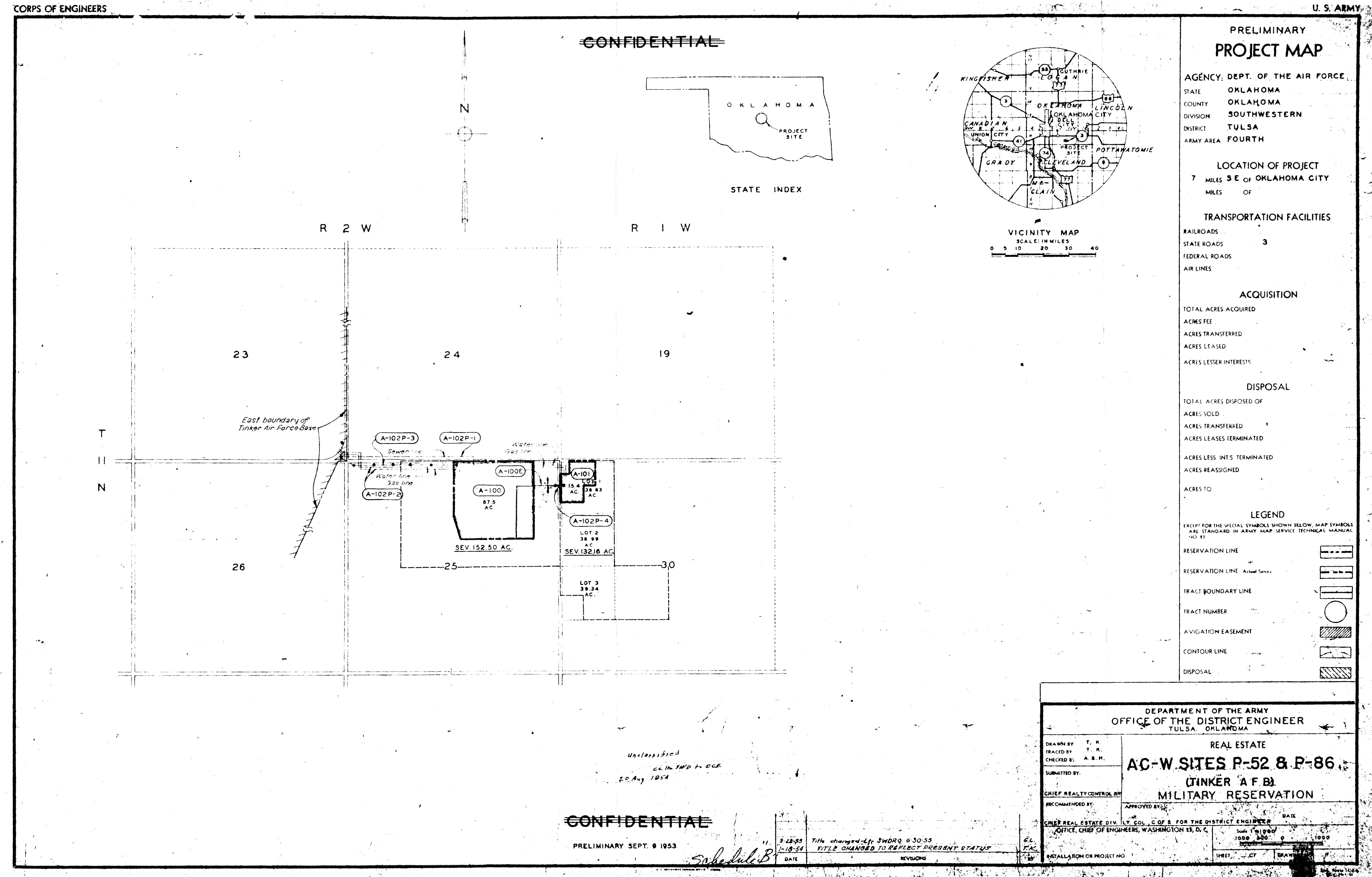 Muskogee High Energy Fuel Plant OK, Military Reservation, 19620804 (Right). NARA-SW. Navasota Intermediate Field Auxiliary Field TX, Ownership, 19480922. NARA-SW. Nebraska Ordnance Plant NE, Reservation Map, 19590415. RP. Nike LR-10 AR, Real Estate, 19630927. NARA-SW Oklahoma City AFS OK, Real Estate, 1955092. NARA-SW. Pyote AFS TX, Real Estate, 19640318. NARA-SW. Roe Auxiliary Field AR, Real Estate, 19470429. NARA-SW. Sweetwater AFS TX, Real Estate, 19640319. NARA-SW.