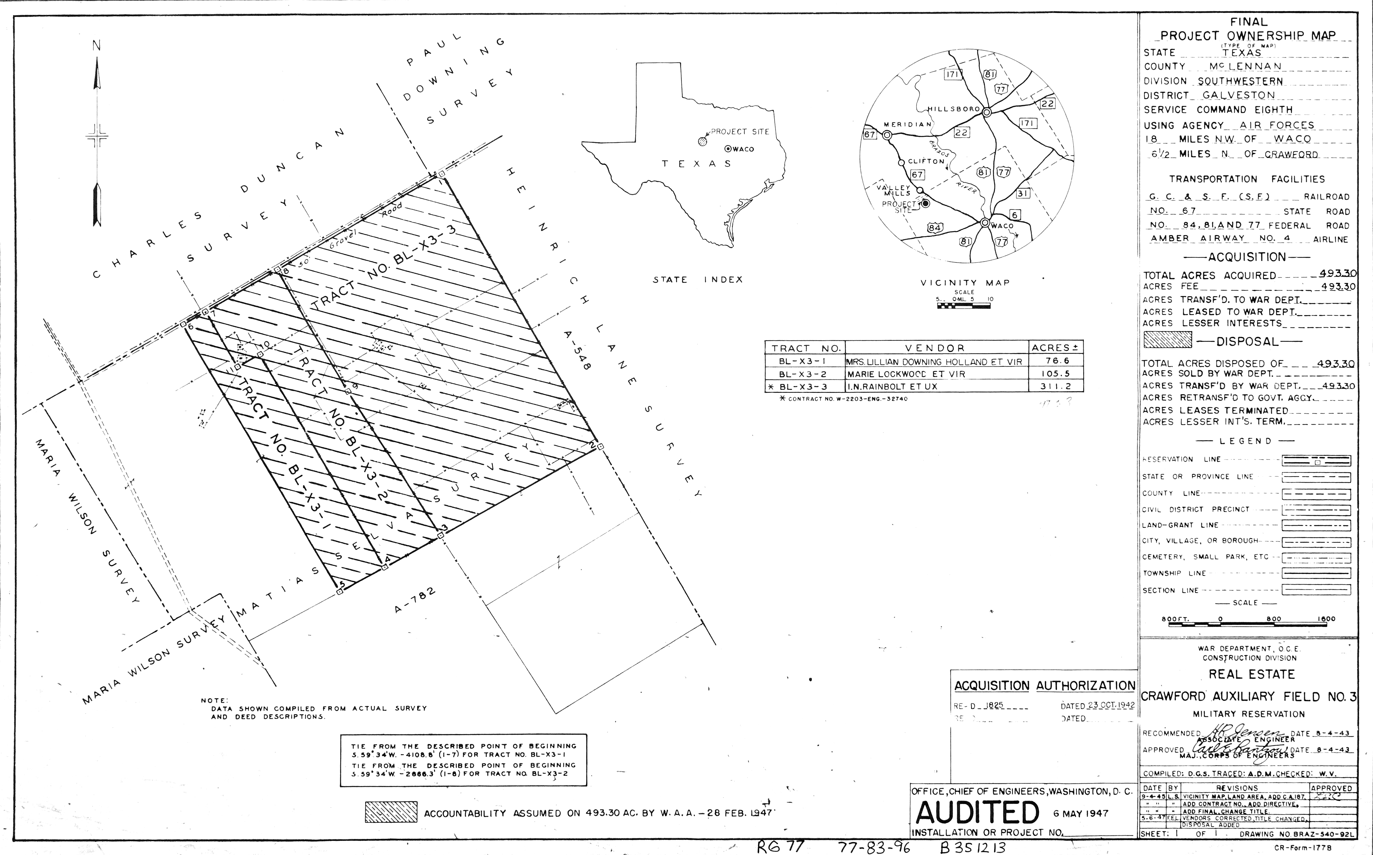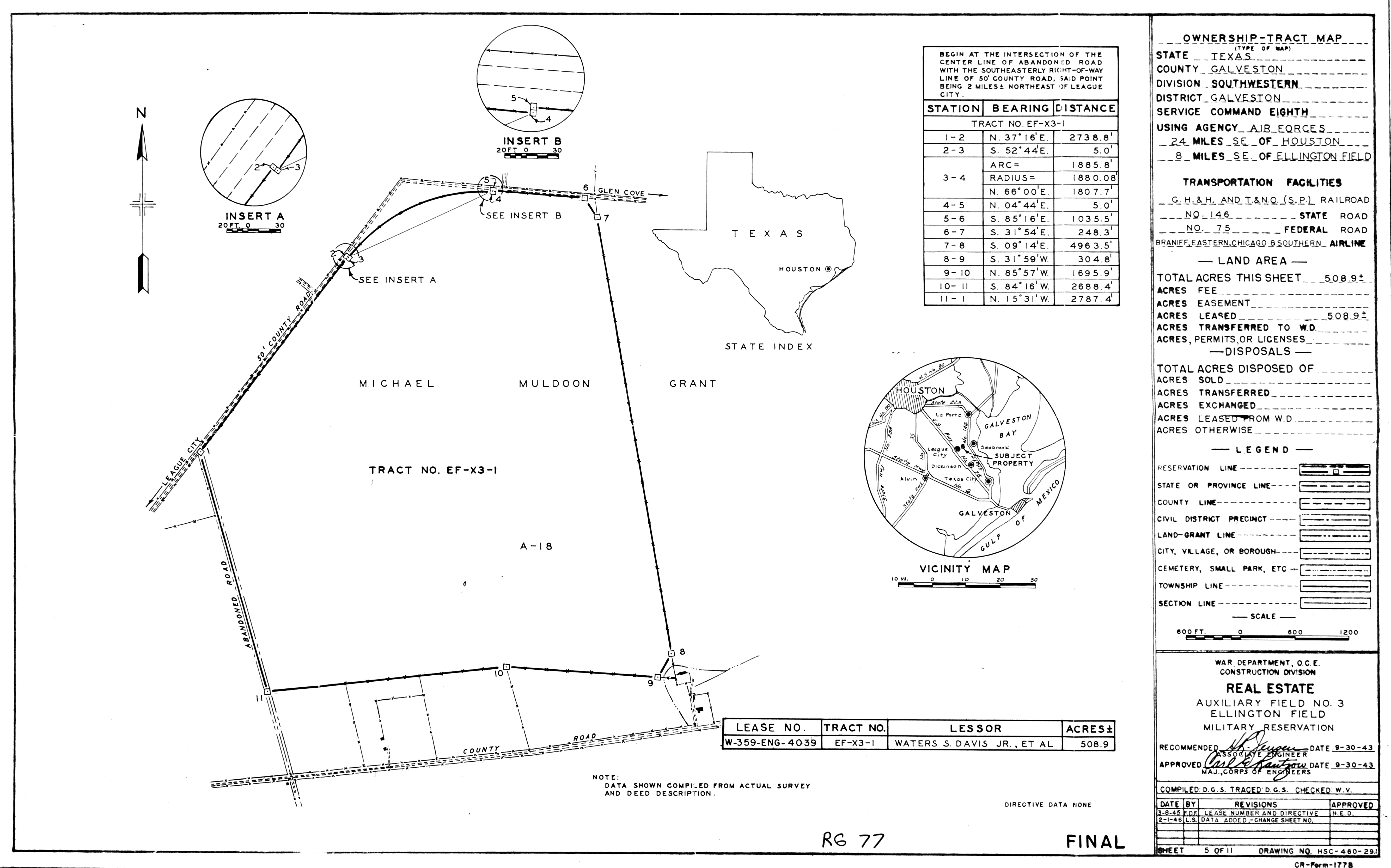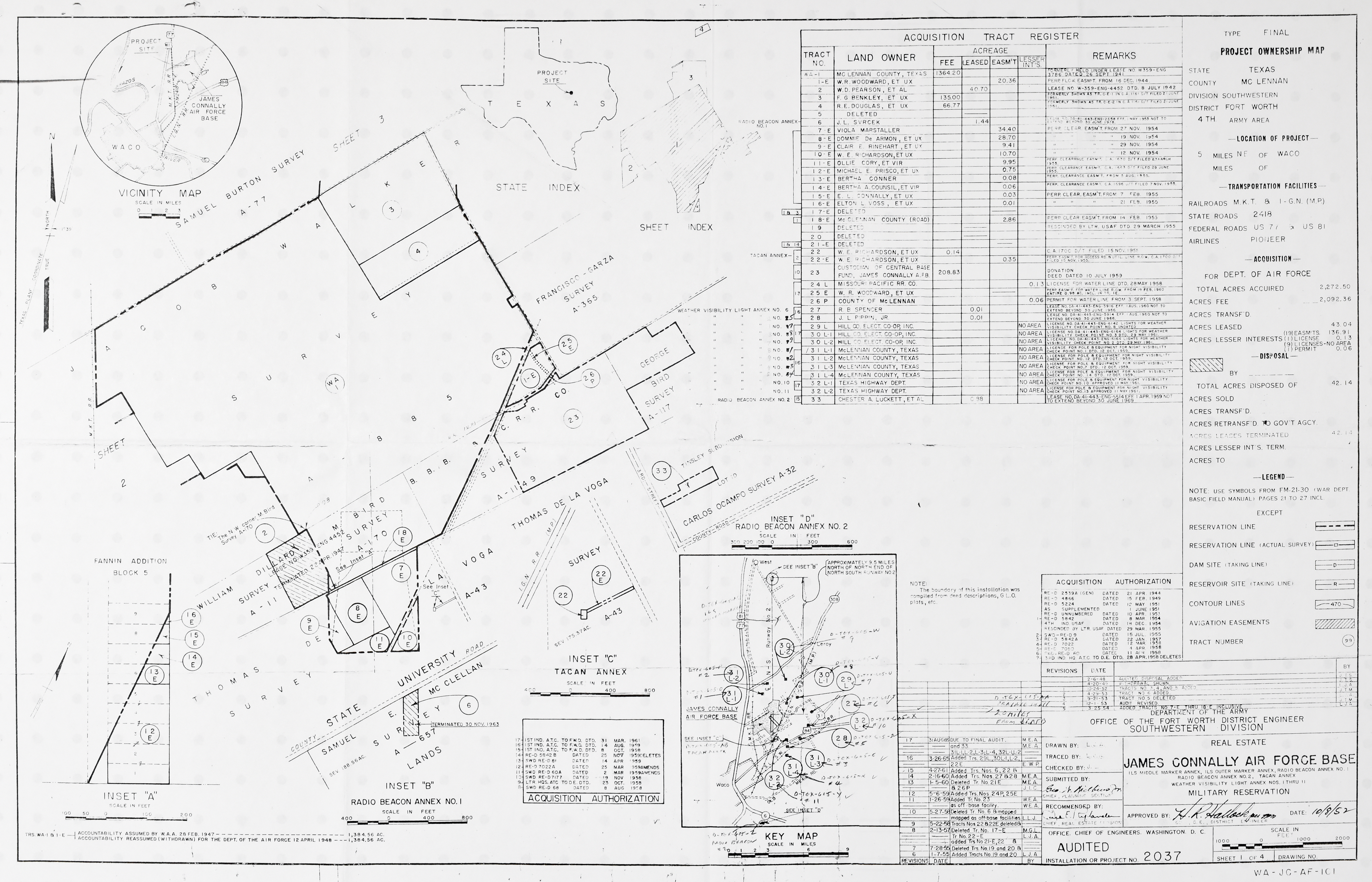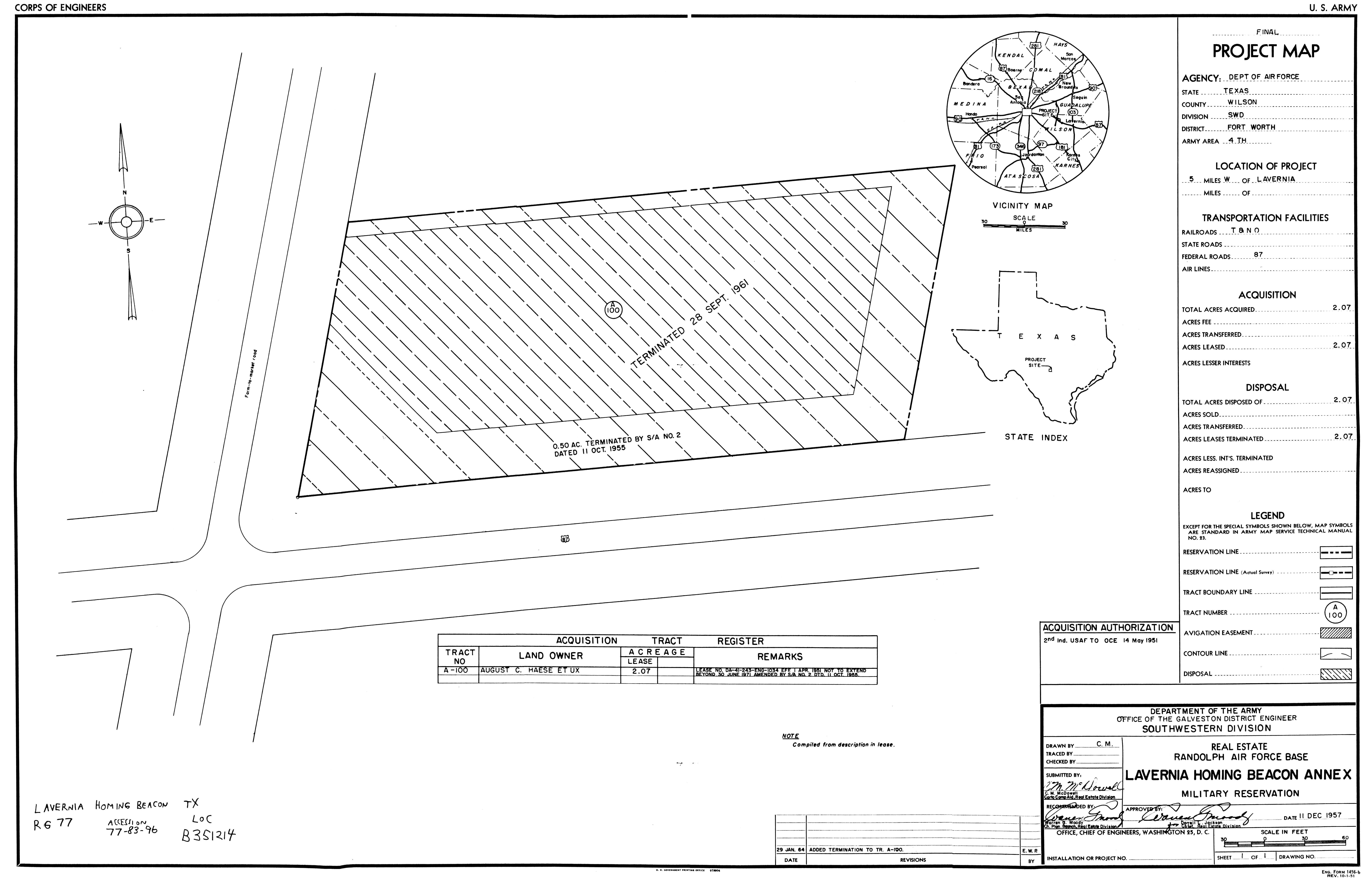 Lavernia Radio Beacon Anx TX, Randolph Real Estate, 19640129. NARA-SW. Added February 2026 League Davis Aux Fld TX, Real Estate, 19460201. NARA-SW. Added February 2026 Lehigh RBSS OK, Real Estate (Complete), 19710210. FOIA. Added February 2026