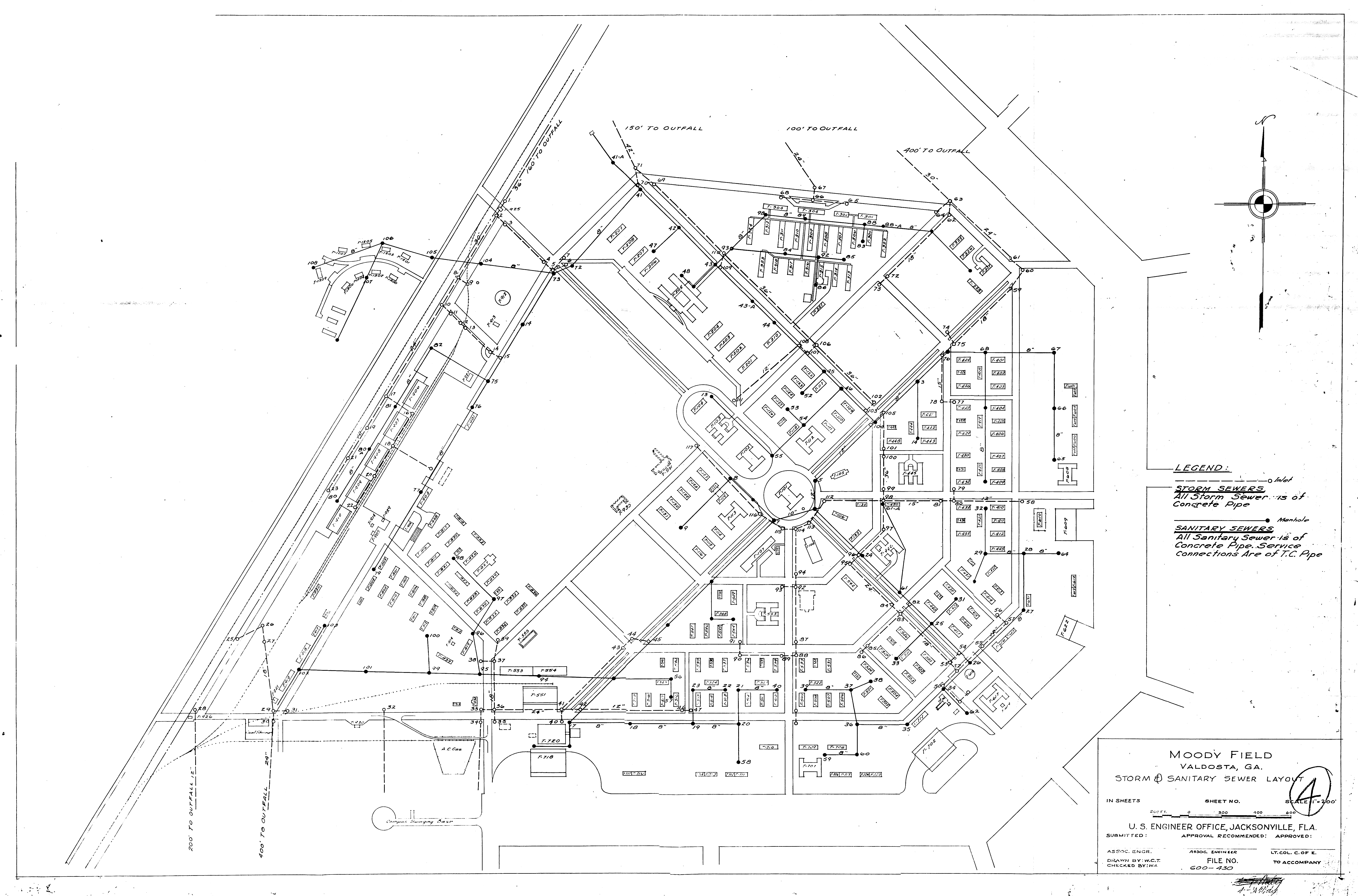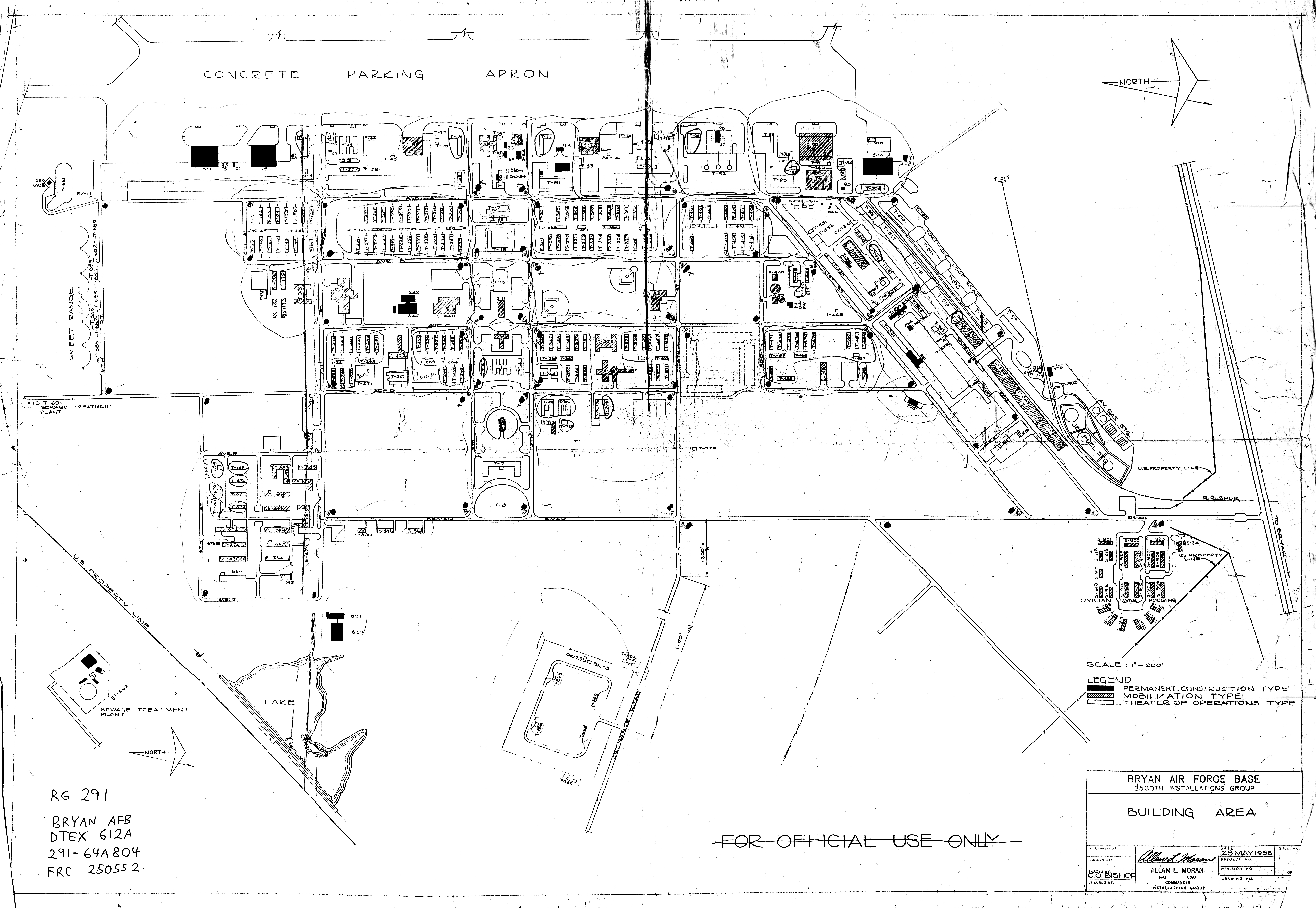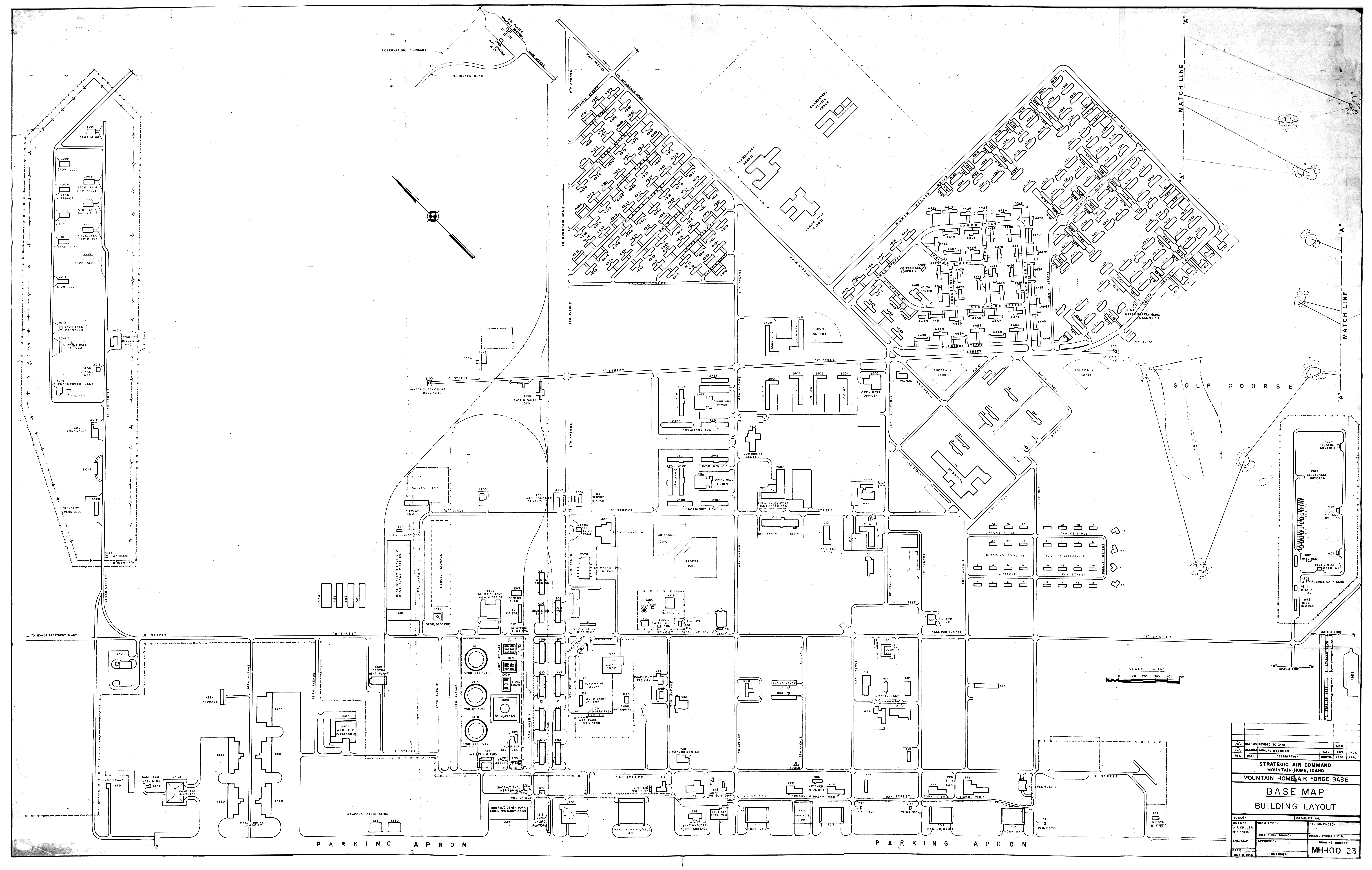 Moody AFB GA, Sewer Layout, nd. FOIA. Moody Civilian War Hsg Area GA, Water and Sewer Layout, 19420824. FOIA. Moore Rad Rg Anx TX, Real Estate, 19470528. NARA-SW. Mountain Home AFB ID, Building Layout, 19650730. FOIA. Muskogee High Energy Fuel Plant OK, Military Reservation, 19620804 (Center). NARA-SW.