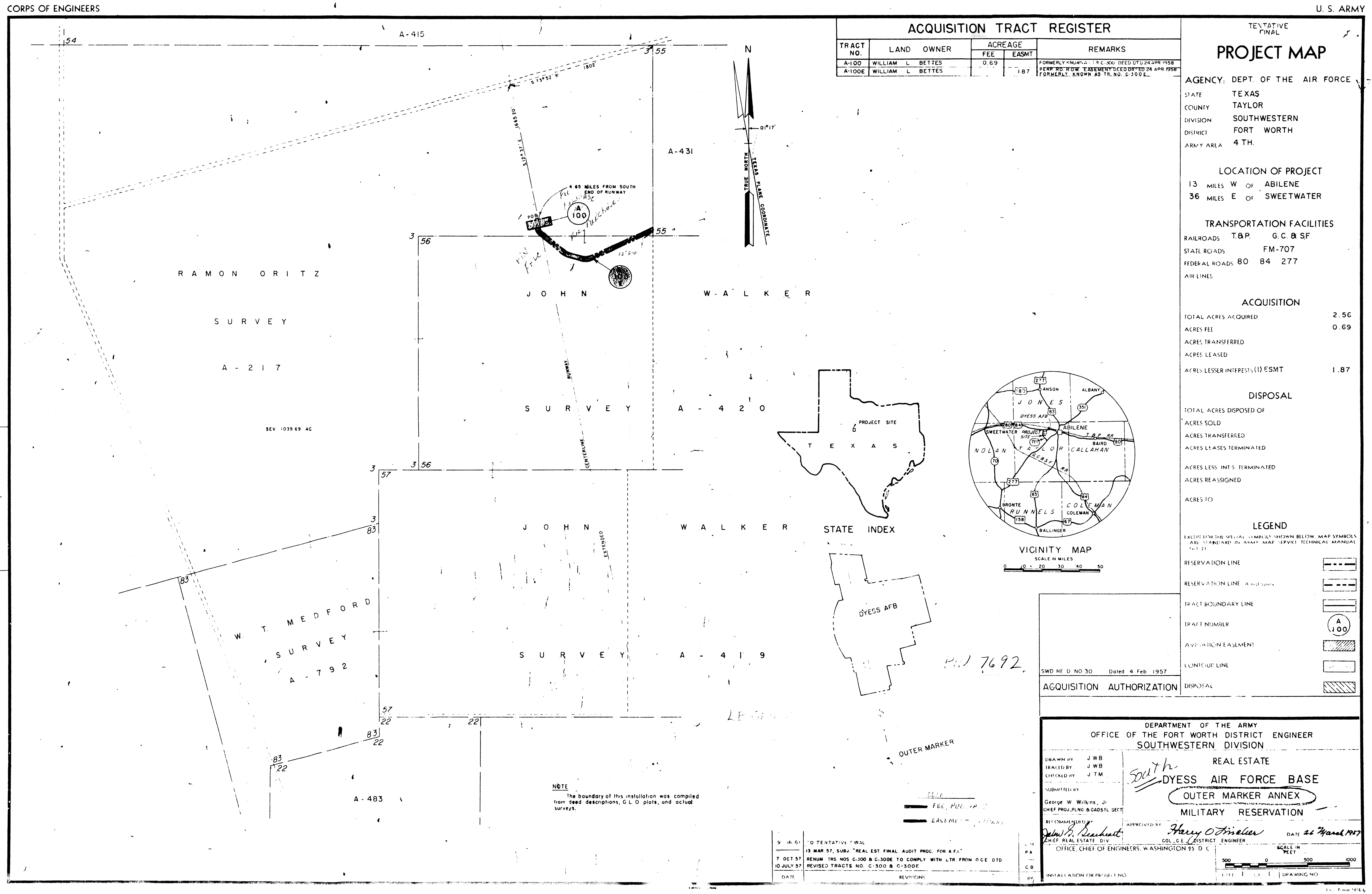 Dyess ILS OM Anx TX, Real Estate, 19720911. NARA-SW. Added February 2026 Dyess Recrn Anx 2 TX, Real Estate, 19580516. NARA-SW. Added February 2026 Dyess Small Arms Range Annex TX, Camp Barkeley NG Rg, 19701117. FOIA.