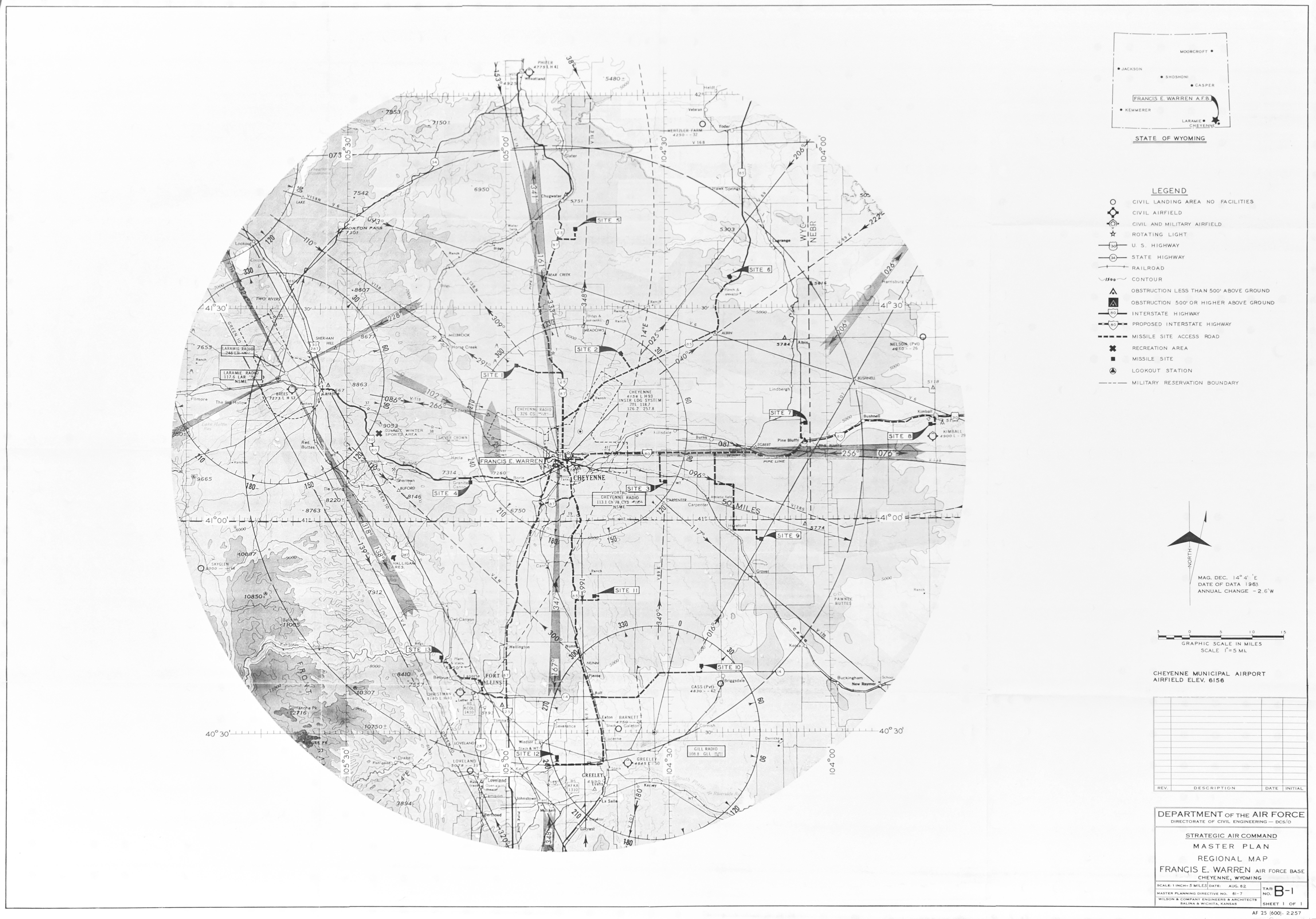 Ellsworth AFB SD, General Layout, 19420309. FOIA. Erwin AF Aux Fld AR, Real Estate, 19561113. NARA-SW. Ethan Allen AFB VT, Building Directory, 1953. CoE. F.E. Warren AFB WY, Map of Fort D.A. Russell, nd. FOIA.