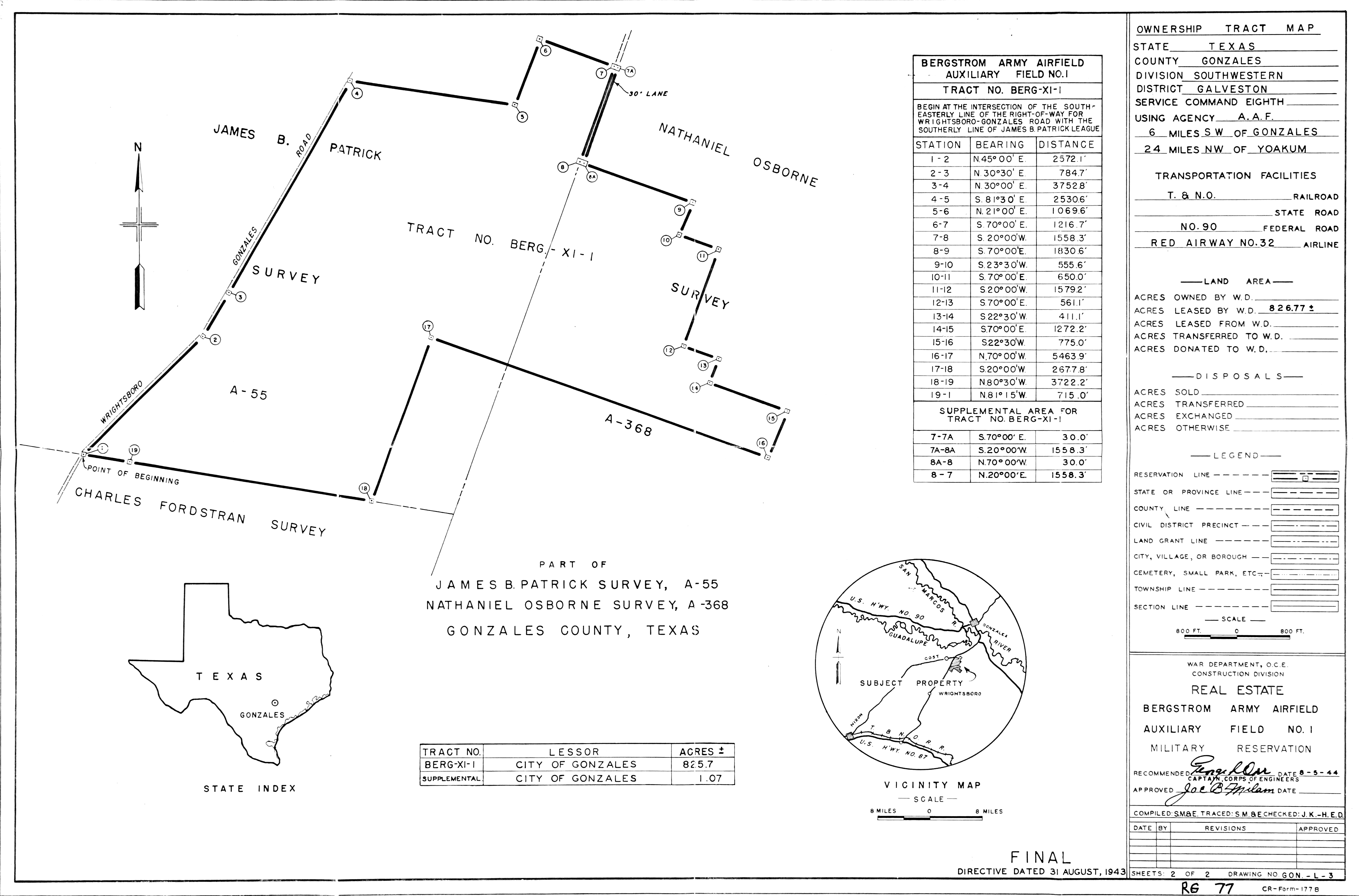 Gerstner Field LA, Property Map (Annotated), 19190101 Added February 2026 Gonzales Aux Fld 1 TX, Real Estate, 19440805. NARA-SW. Added February 2026 Goodfellow AFB TX, Real Estate, 19570214. NARA-SW. Added February 2026
