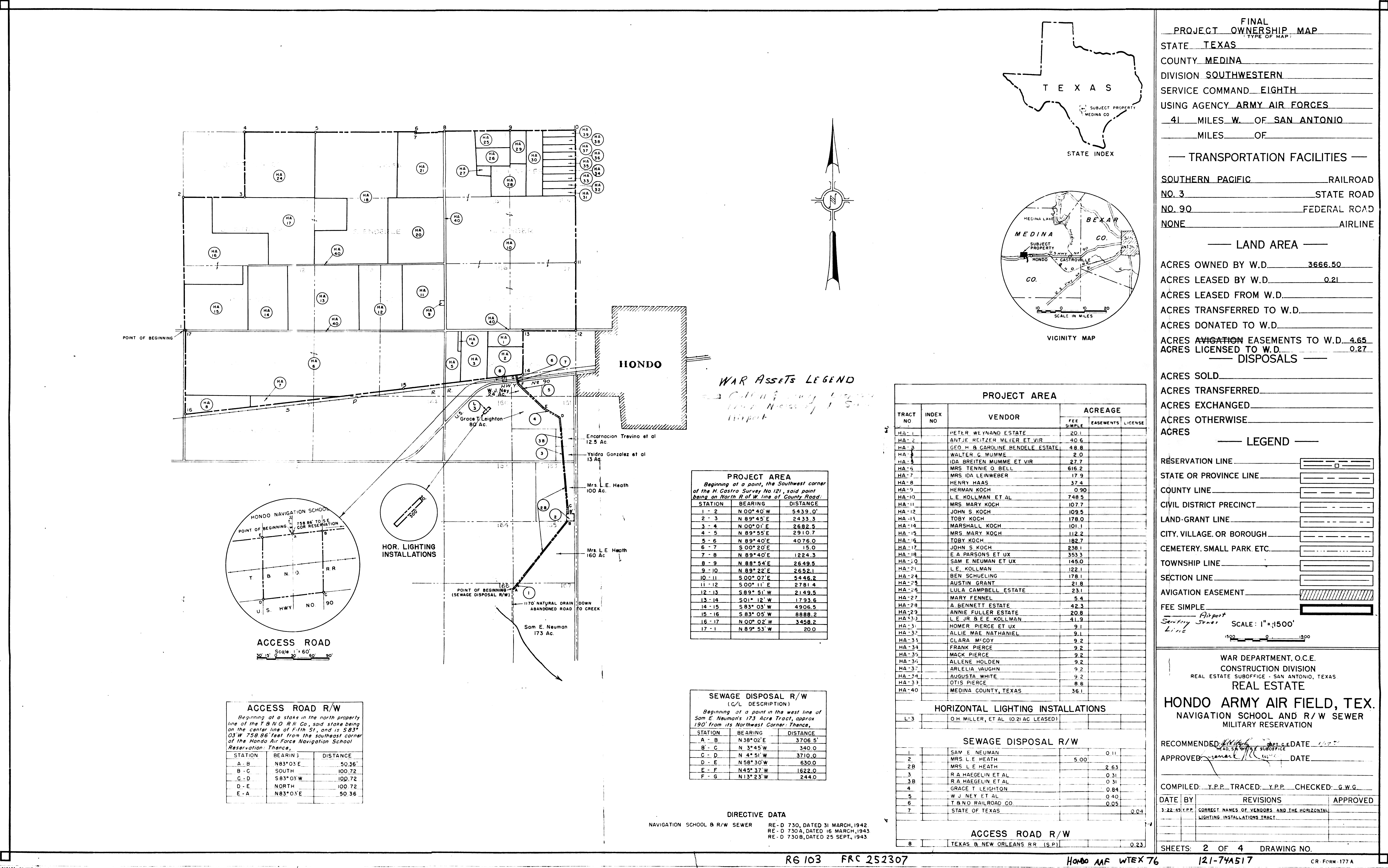 Hondo AB TX, Basic Layout (Index detail), 19450731. NARA-SW. Added February 2026