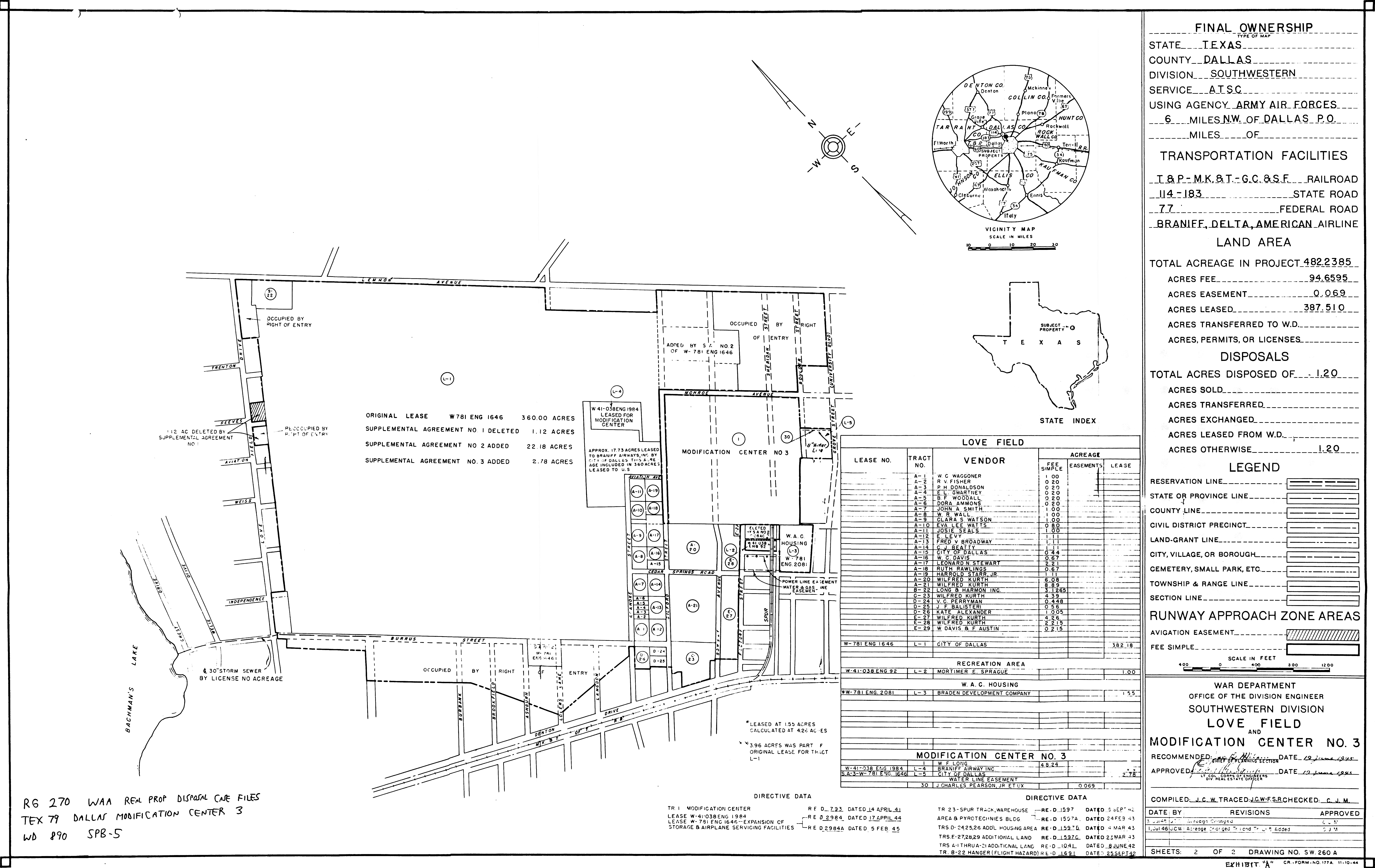 Love Field and AAF Mod Ctr No. 3 TX, Ownership, 19460701. NARA-SW. Added February 2026 Lufkin AFS TX, Real Estate, 19581128. NARA-SW. Added February 2026 MacDill AFB FL, Layout Details, 194001. FOIA.