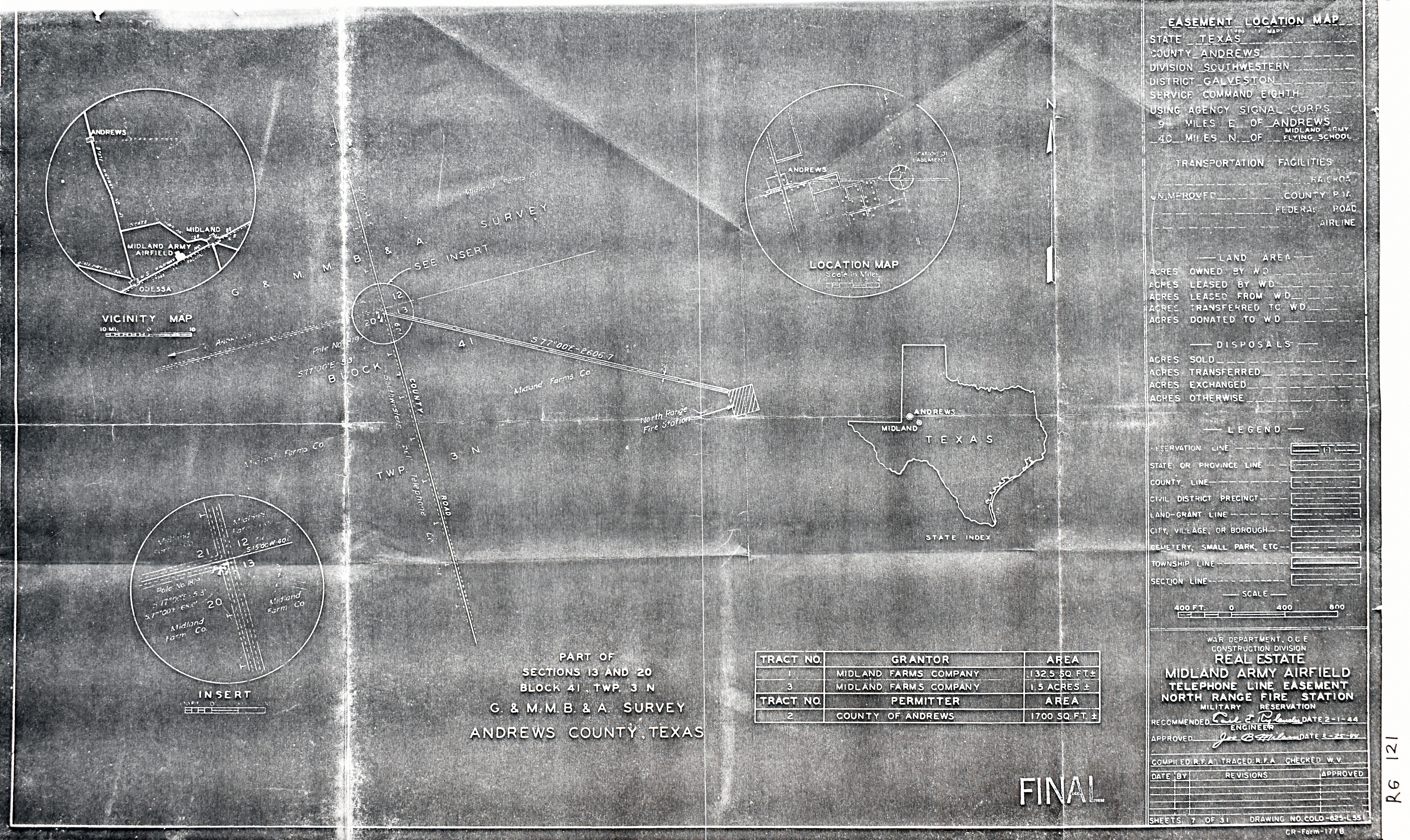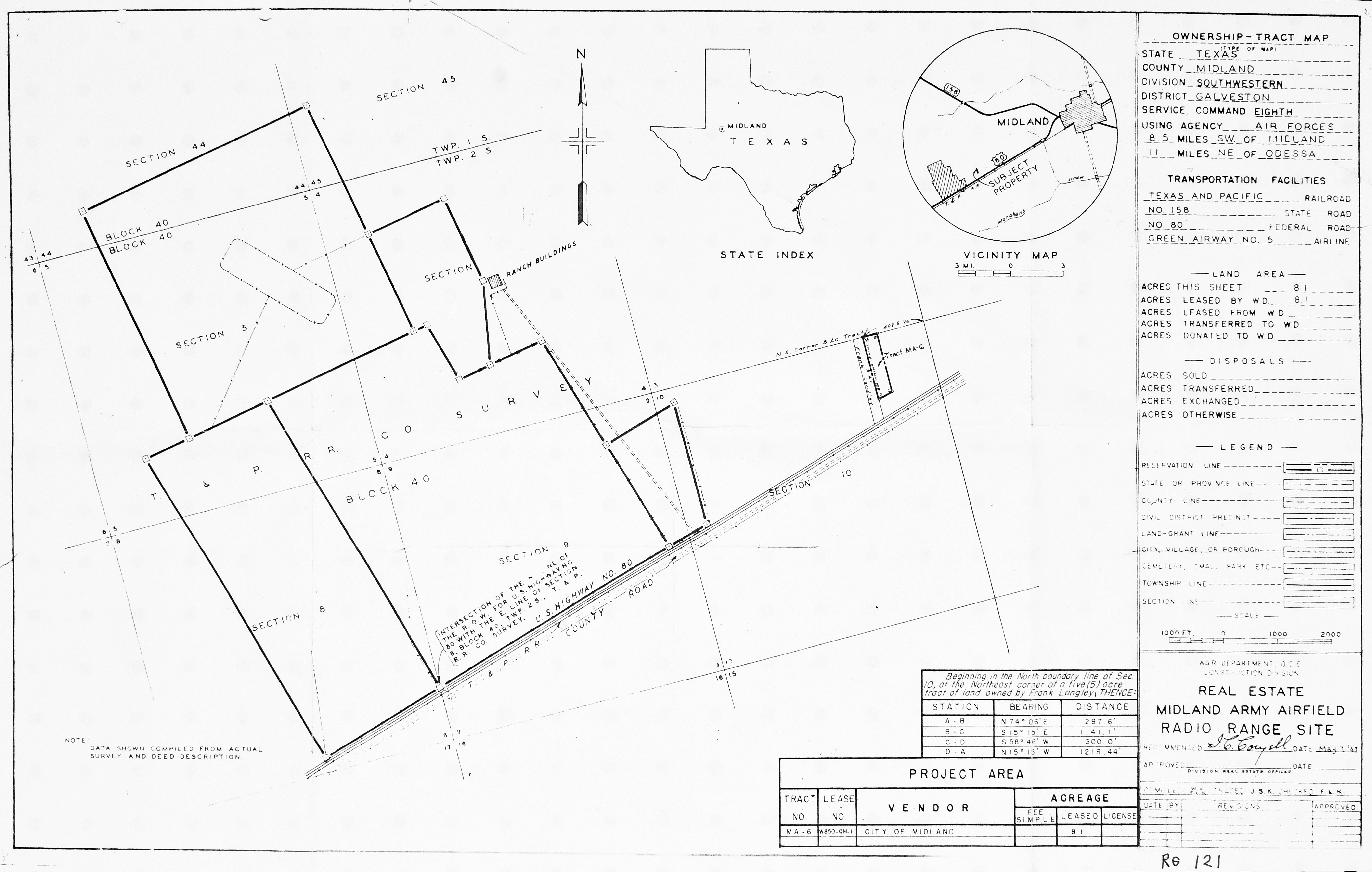 MacDill AFB FL, unnamed, 19410715. FOIA. Majors Aux Fld 2 TX, Real Estate, 19440328. NARA-SW. Mansfield AAFld LA, Real Estate, 19440701. NARA-SW. March Rad Rg Anx CA, unnamed, 19680119. FOIA. Marfa Rad Rg and Tmtr TX, Real Estate, 19440503. NARA-SW. Marion Heli Landing Anx TX, Real Estate, 19580224. NARA-SW. Mason GFA TX, Real Estate, 19580609. NARA-SW. Matagorda Island AF Rg TX, Ownership, 19460114. NARA-SW. Matagorda Island Dock Anx TX, Real Estate, 19521029. NARA-SW. Maxwell AFB AL, Base Plan, 196809. FOIA. McCamey GFA TX, Real Estate, 19630619. NARA-SW. McConnell AFB KS, Buildings Group J Location Plan, 195506. FOIA. Midland AAFld TX, Real Estate, 19490728. NARA-SW. Added February 2026 Midland Radio Range Station TX, Real Estate, 19470507. NARA-SW. Midland PBR 21 TX, Telephone Pole Line, 19551021. NARA-SW. Midland North Rg Fire Stn TX, Real Estate, 19440225. NARA-SW. Milltown Aux Fld AR, Real Estate, 19470612. NARA-SW.