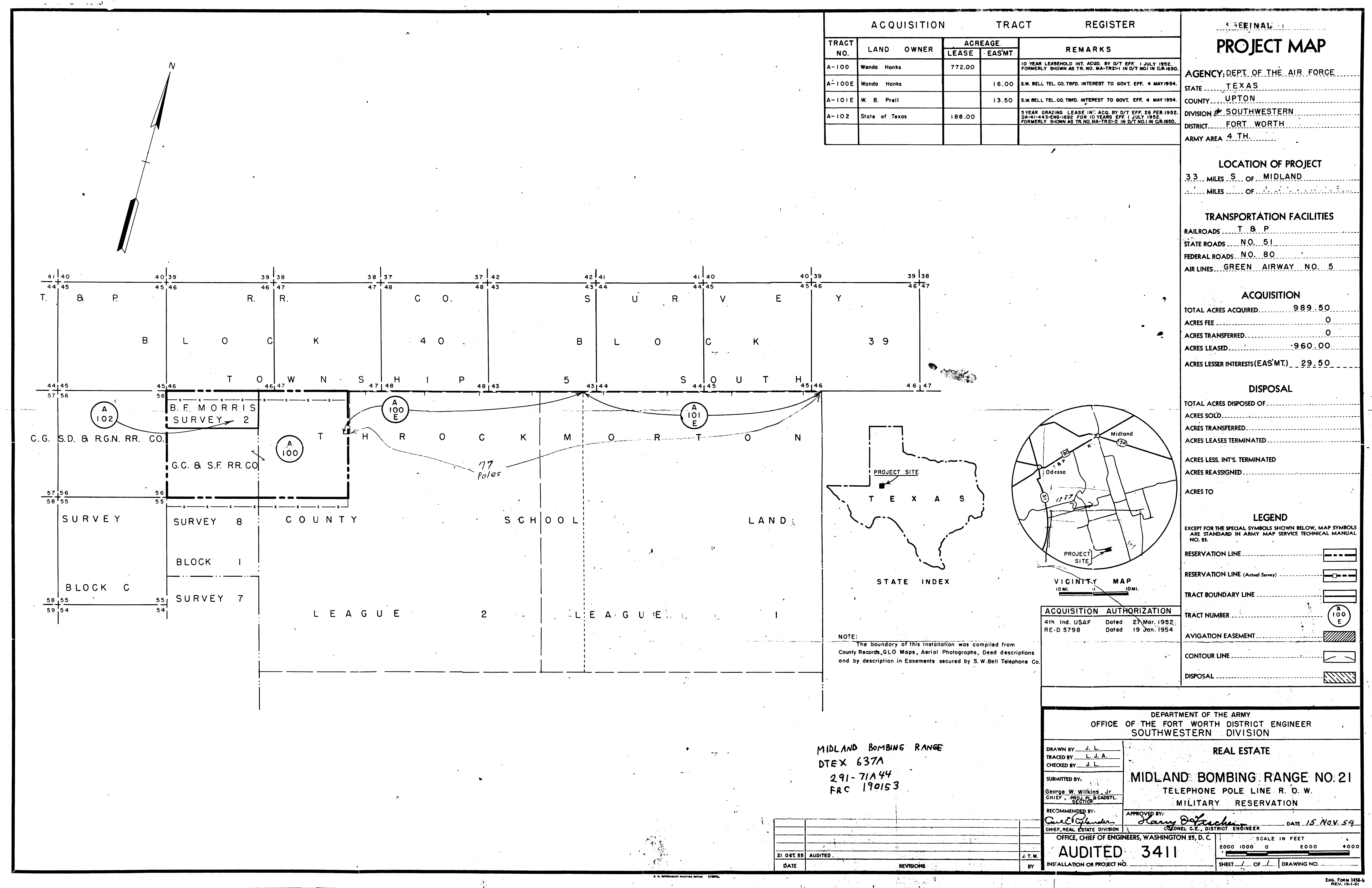Goodfellow AFB TX, Reservation Map, 19431004. FOIA. Added February 2026