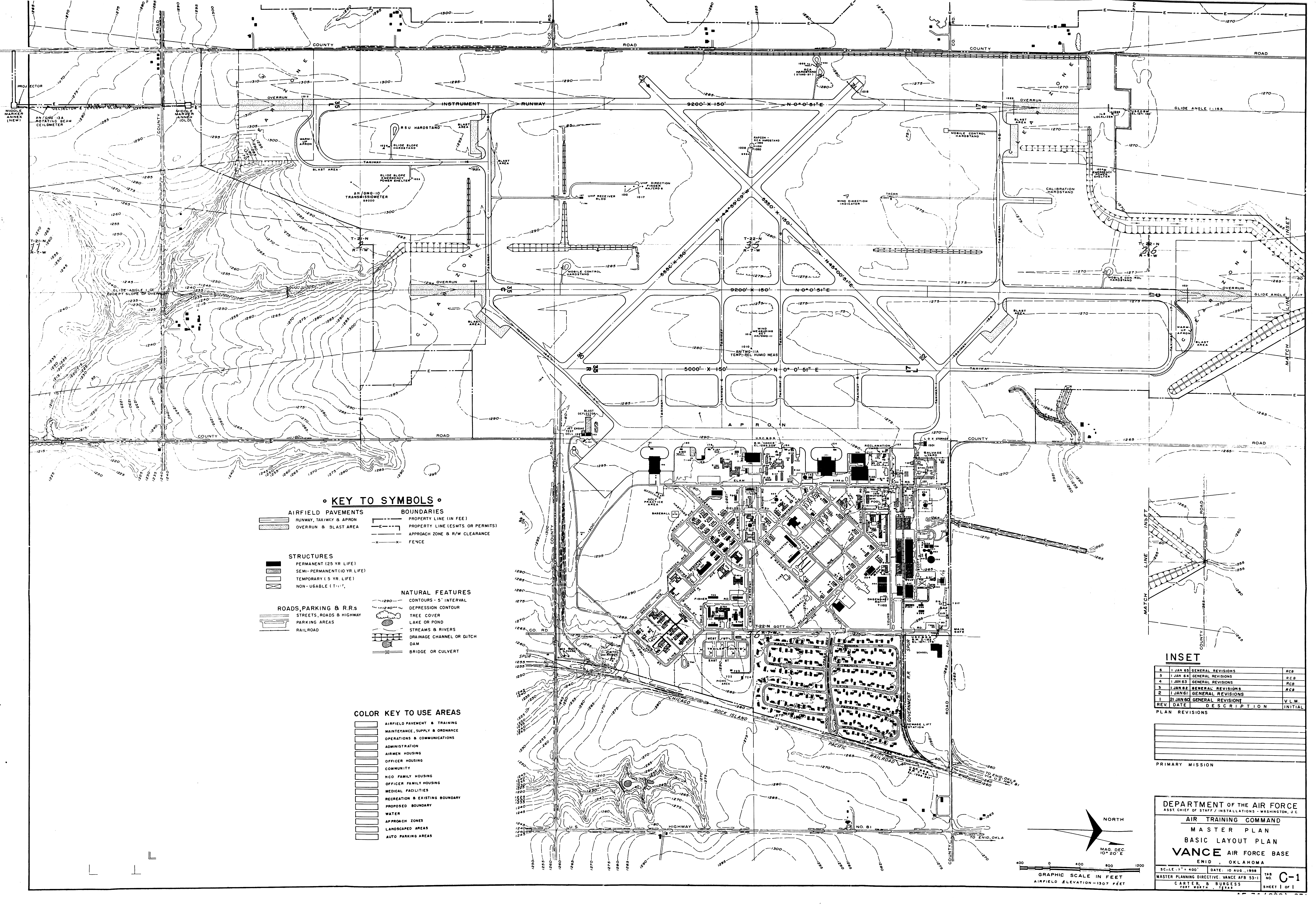 Tulsa Municipal Airport OK, Proposed Runway, nd. NARA-SW. Van Court AF Aux Fld TX, Real Estate, 19520201. FOIA. Vance AFB OK, Basic Layout, 19550917. FOIA.