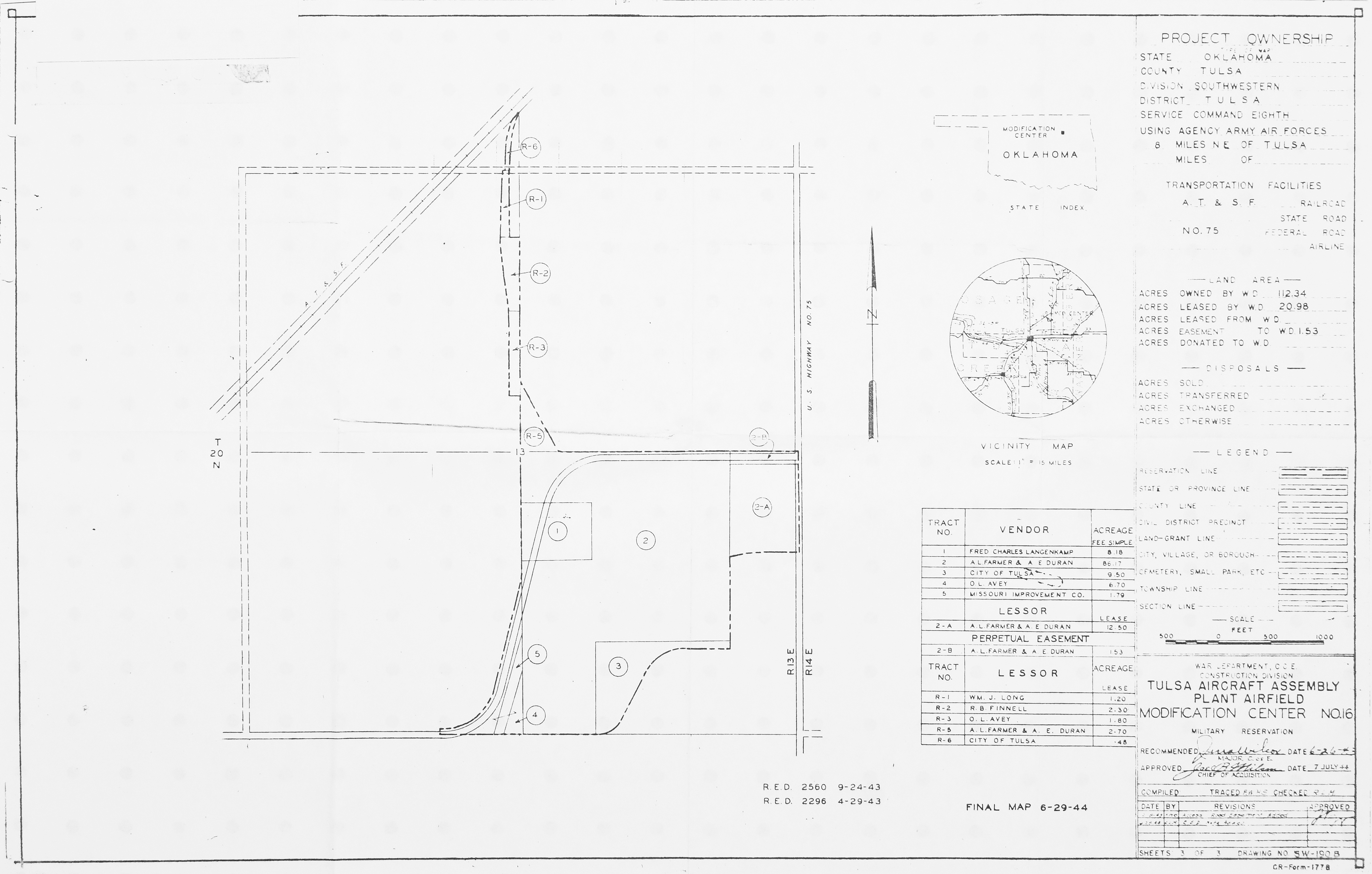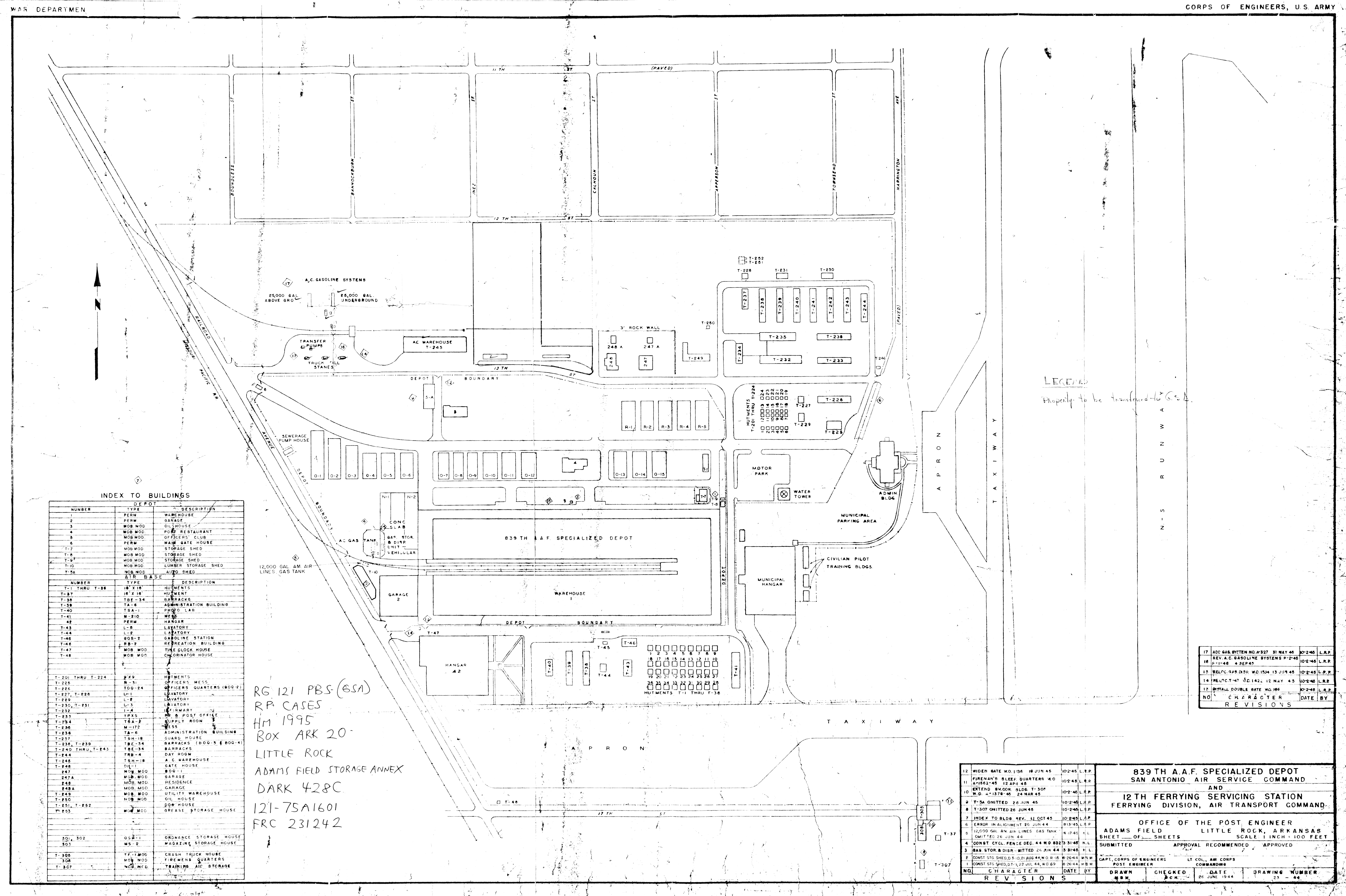 839 AAF Special Depot AR, 12th Ferrying Service Station, 19451002. NARA-SW. Adams Field AR, Real Estate, 19440504. NARA-SW. Air Force Plant No. 3 OK, Tulsa Aircraft Assembly Plant, 19440628. NARA-SW.