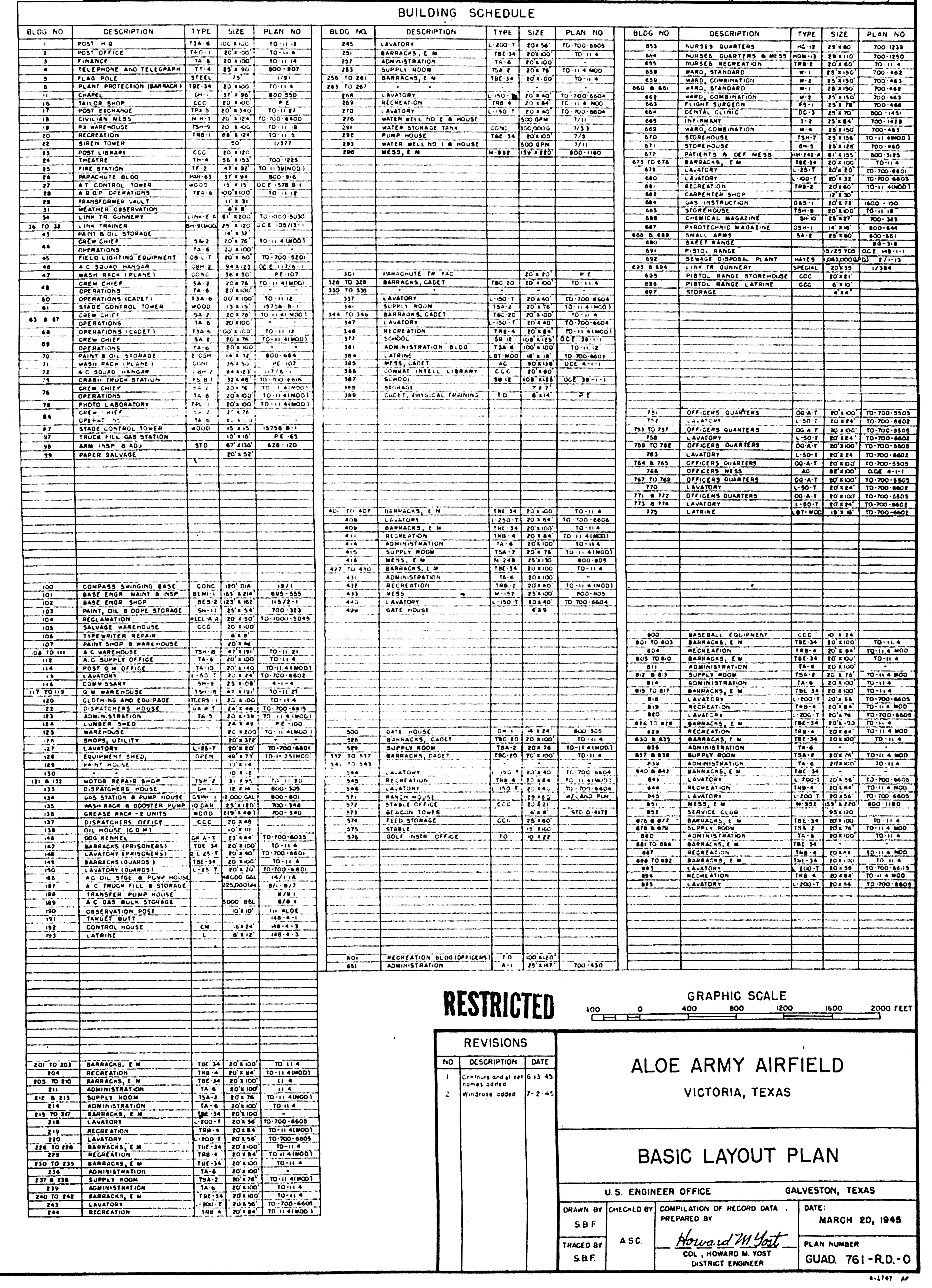 Aloe AAFld TX, Basic Layout Plan, 19450702. NARA-SW.