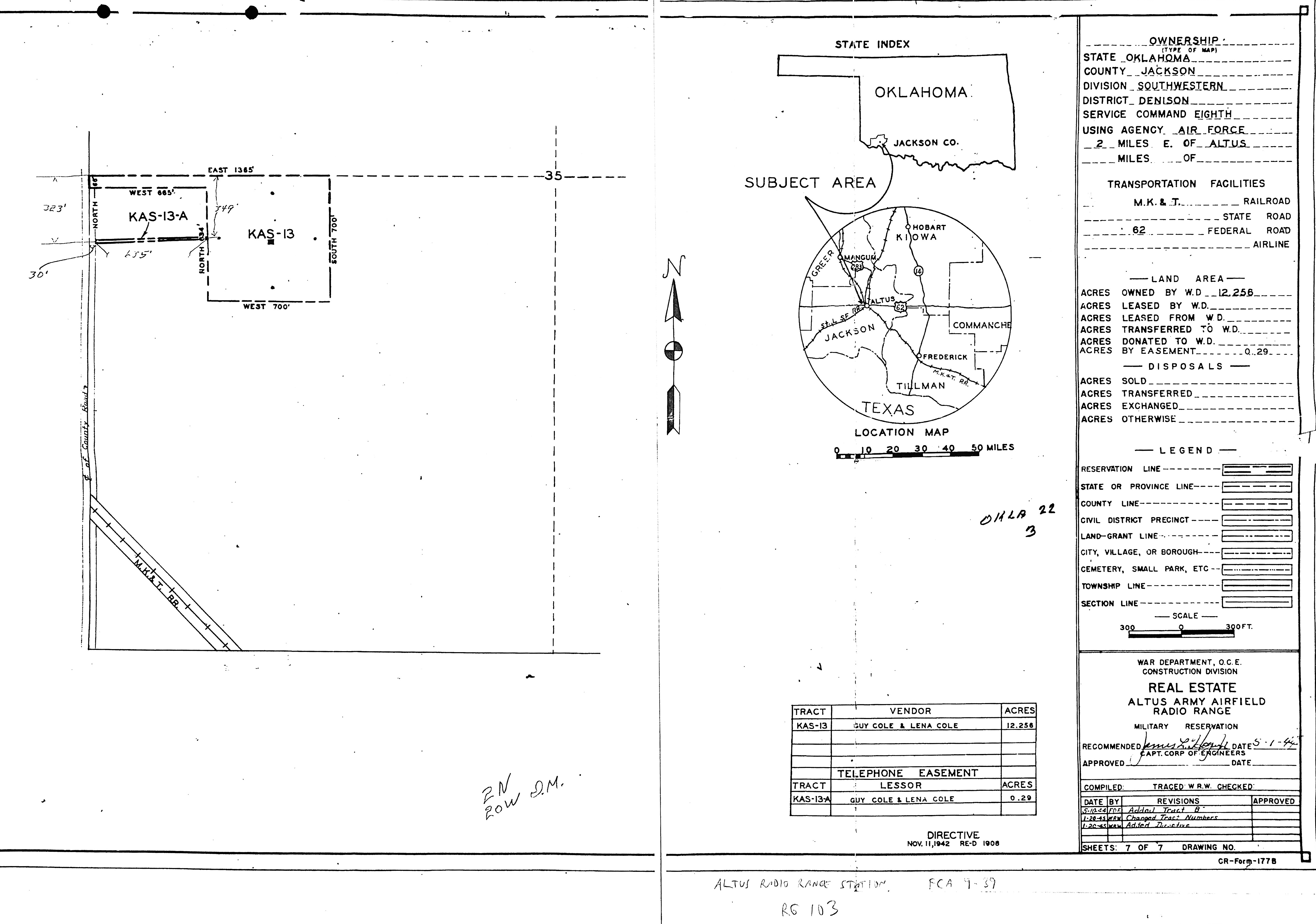 Aloe AAFld TX, Basic Layout Plan (Detail), 19450702. NARA-SW. Altus ILS OM Anx OK, Real Estate, 19770907. FOIA. Altus Rad Rg Stn OK, Real Estate, 19450120. NARA-SW. Amagon Aux Fld AR, Real Estate, 1944. NARA-SW. Andersen AFB GU, Base Plan, 19750101. FOIA.