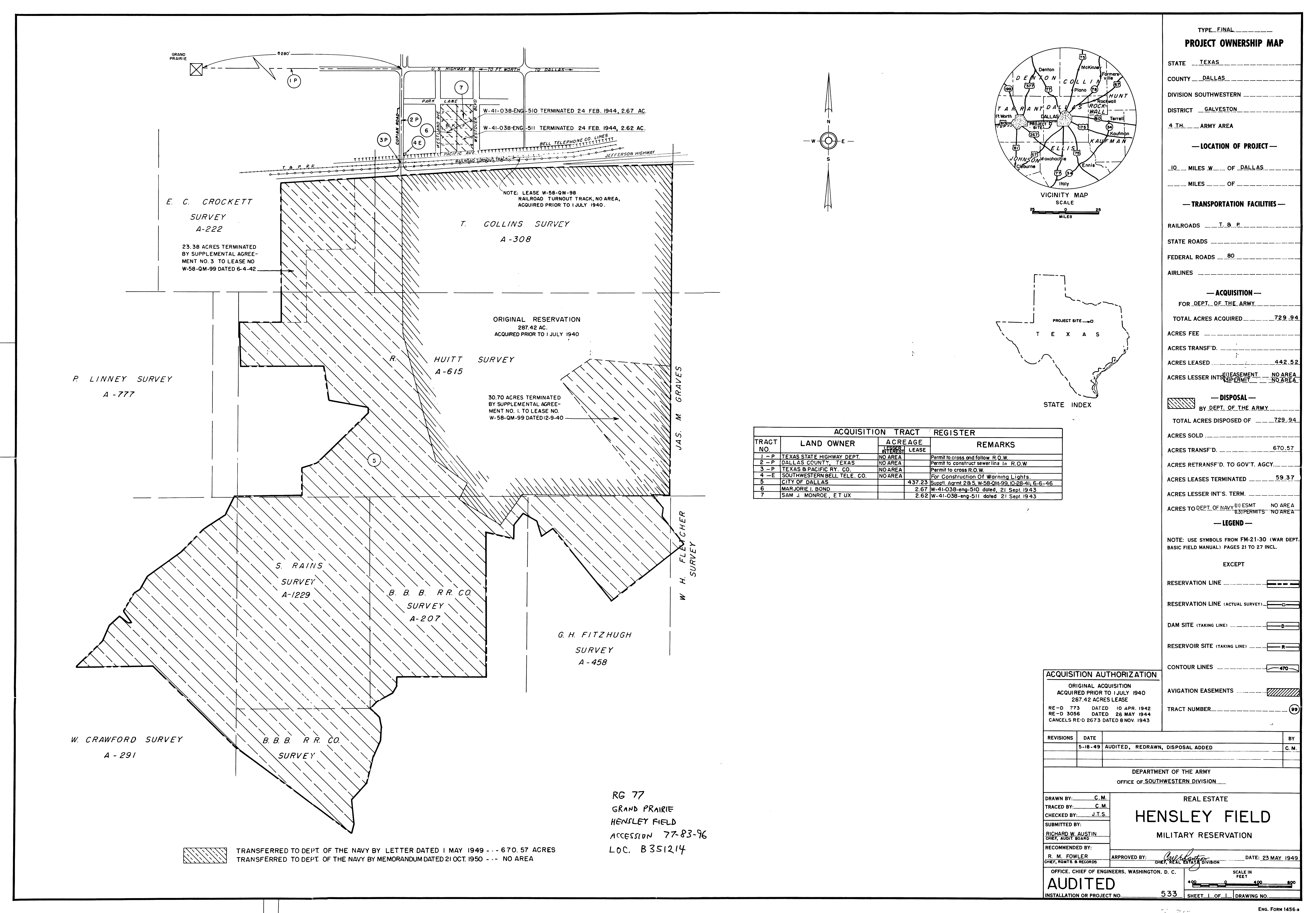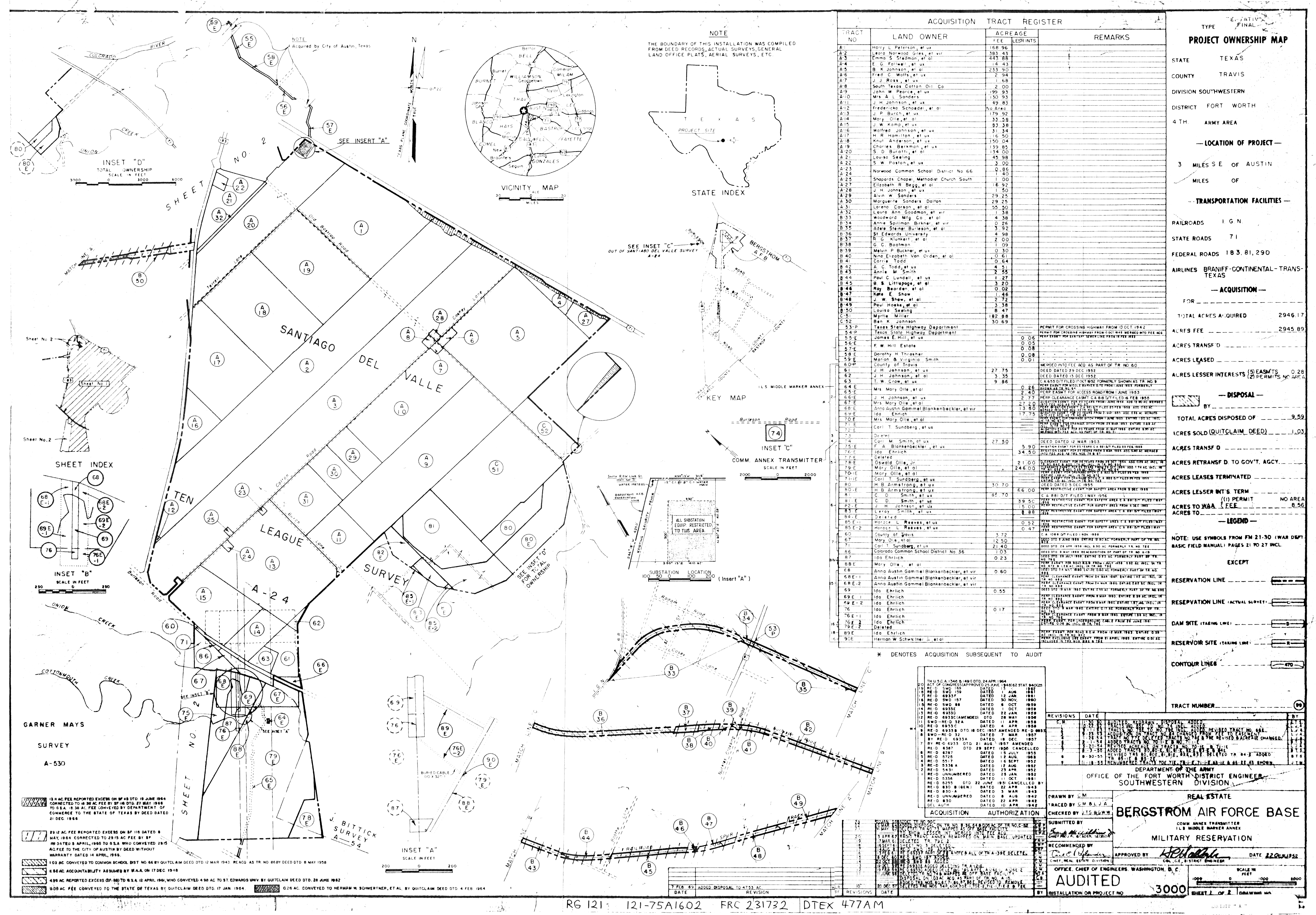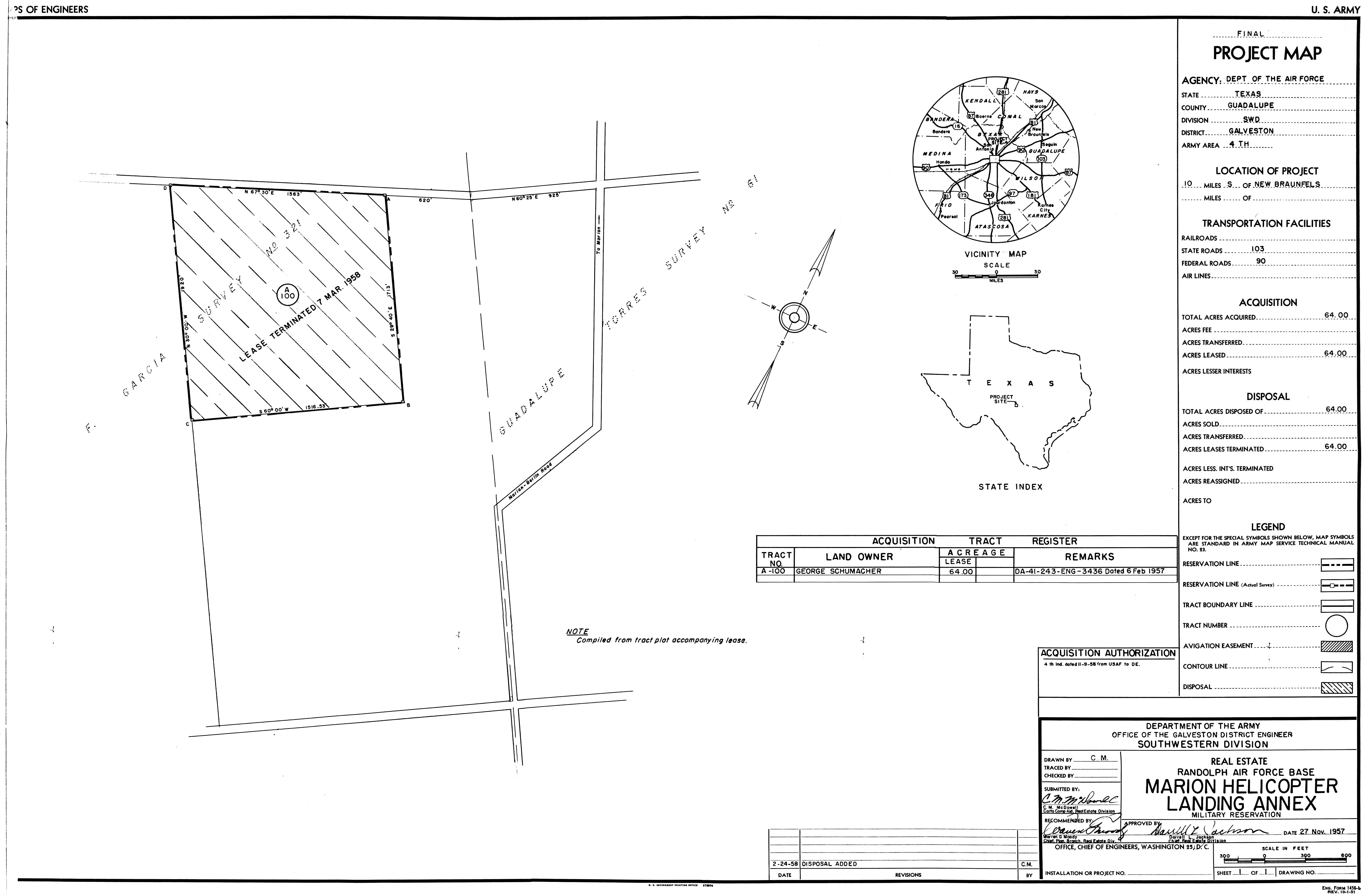 Lavernia Radio Beacon Anx TX, Randolph Real Estate, 19640129. NARA-SW. Added February 2026 League Davis Aux Fld TX, Real Estate, 19460201. NARA-SW. Added February 2026 Lehigh RBSS OK, Real Estate (Complete), 19710210. FOIA. Added February 2026