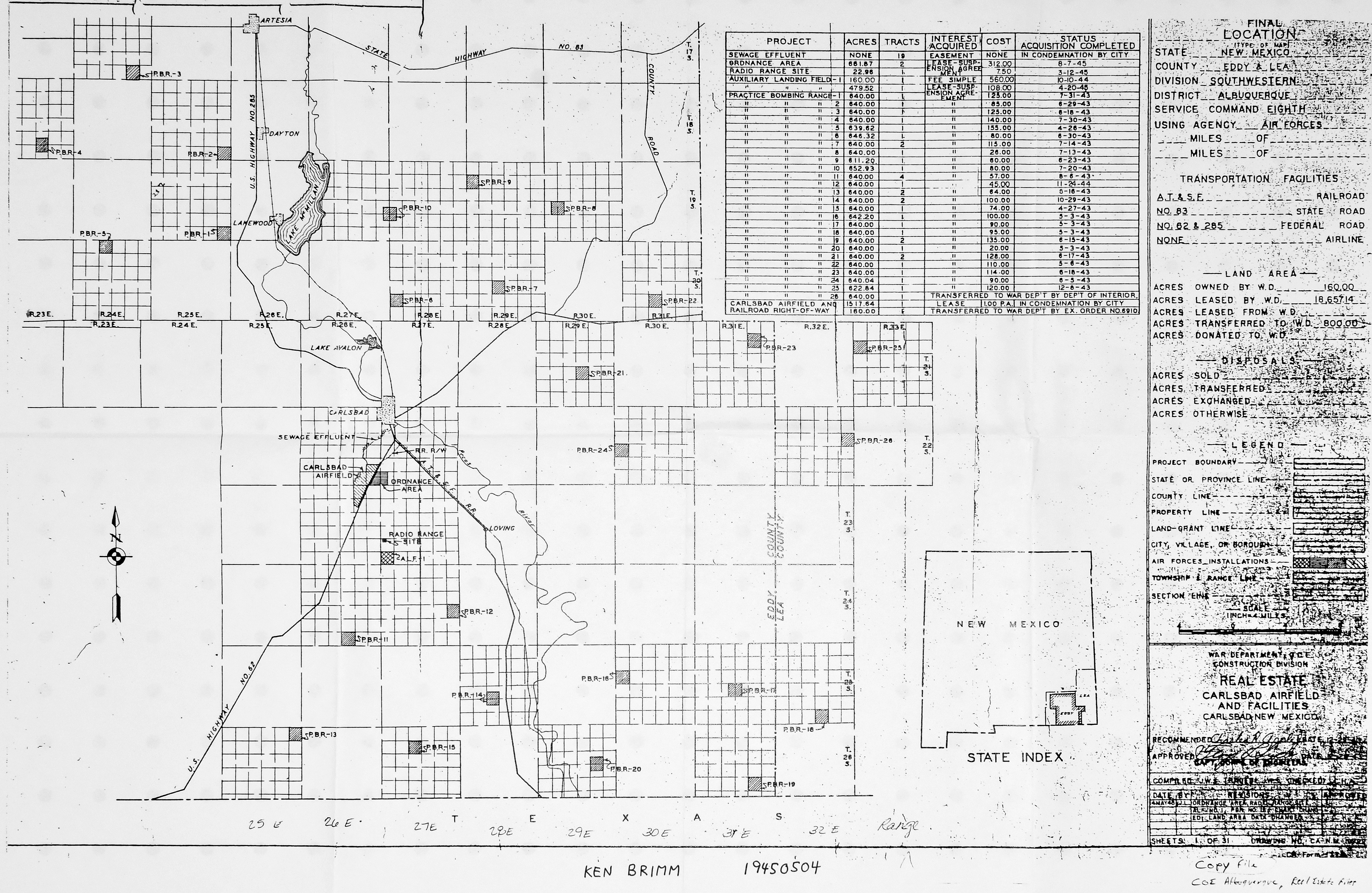 These are large format documents I obtained either from active bases or major commands under the Freedom of Information Act (FOIA), from the National Archives and Records Administration (NARA), from the U.S. Army Corps of Engineers (CoE), or from other independent researchers. NARA-SW indicates NARA Southwest Region (Fort Worth); NARA-RM indicates NARA Rocky Mountain Region (Denver). 839 AAF Special Depot AR, Fire Reporting Telephones, 19450620. NARA-SW.