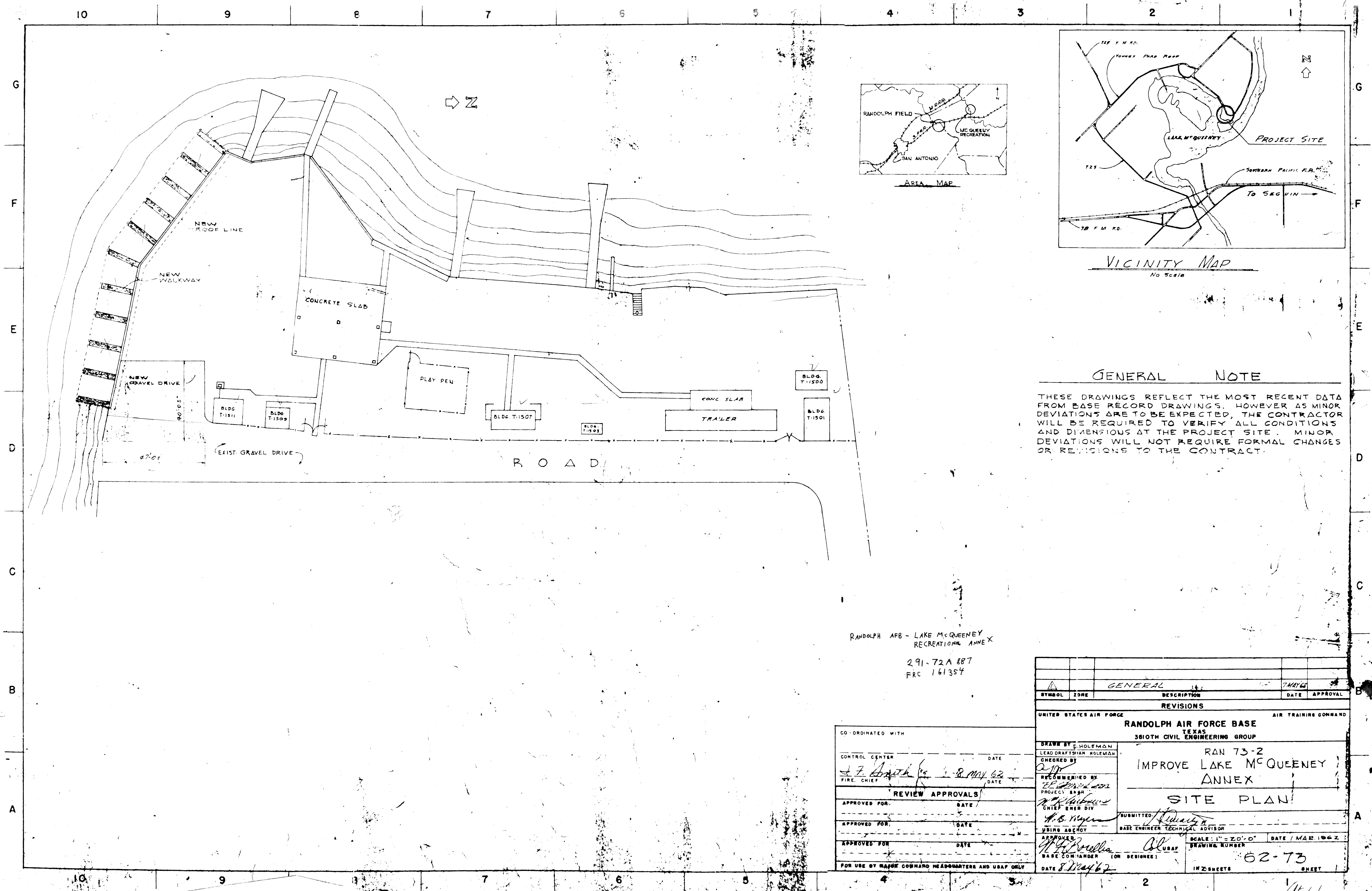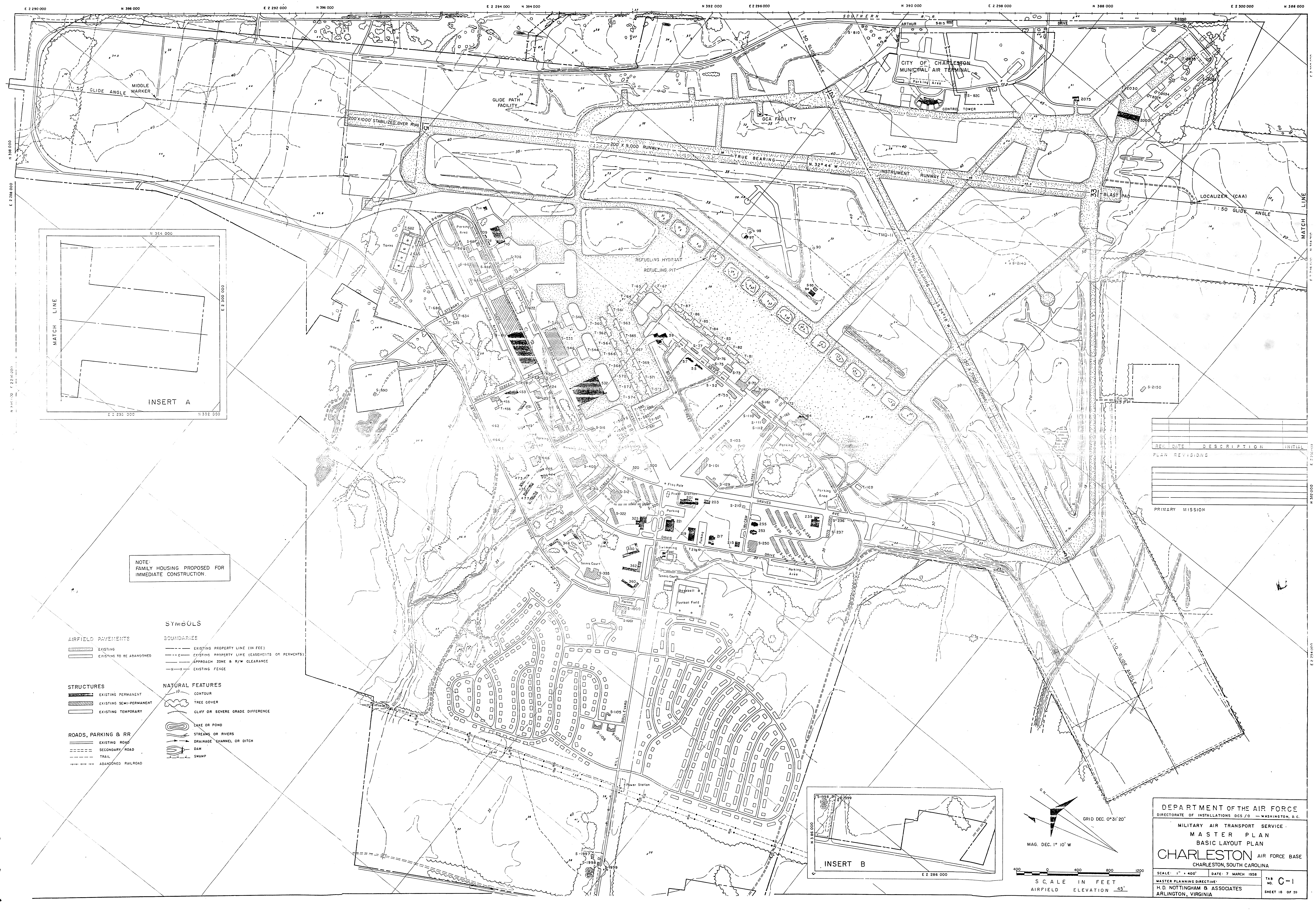Brownsville AAB TX, Rio Grande IAP, 19480316. NARA-SW. Bryan AFB TX, Building Area, 19560523. NARA-SW. Call Field TX, Property Map, nd. NARA-SW. Added February 2026 Camp Cushing TX, Real Estate, 19491114. NARA-SW. Added February 2026 Camp Mystic TX, Rest Camp for AAF, 19461125. NARA-SW. Added February 2026 Cannon AFB NM, Regional Map, 19460403. NARA-SW. Added February 2026 Canyon Lake Recrn Anx TX, Real Estate, 19690721. FOIA. Added February 2026 Cape Canaveral AFS FL, Plot Plan, 19520710. FOIA. Added February 2026 Carlsbad AAFld and PBRs NM, Real Estate, 19450504. Added February 2026 Carrizo Springs Gap Filler Annex TX, Real Estate, 19560917. NARA-SW. Carswell AFB TX, Real Estate, 19521203. NARA-SW. Added February 2026 Carswell Comms Rcvr TX, Insert Ordnance Area, 19521120. NARA-SW. Added February 2026 Castroville Aux Fld TX, Development, nd. NARA-SW. Added February 2026 Charleston AFB SC, Basic Layout, 19580307. FOIA. Added February 2026 Charleston AFS ME, Topographic Survey, 19601206. CoE. Added February 2026 Chennault AFB LA, Basic Layout, 19450611. NARA-SW. Added February 2026