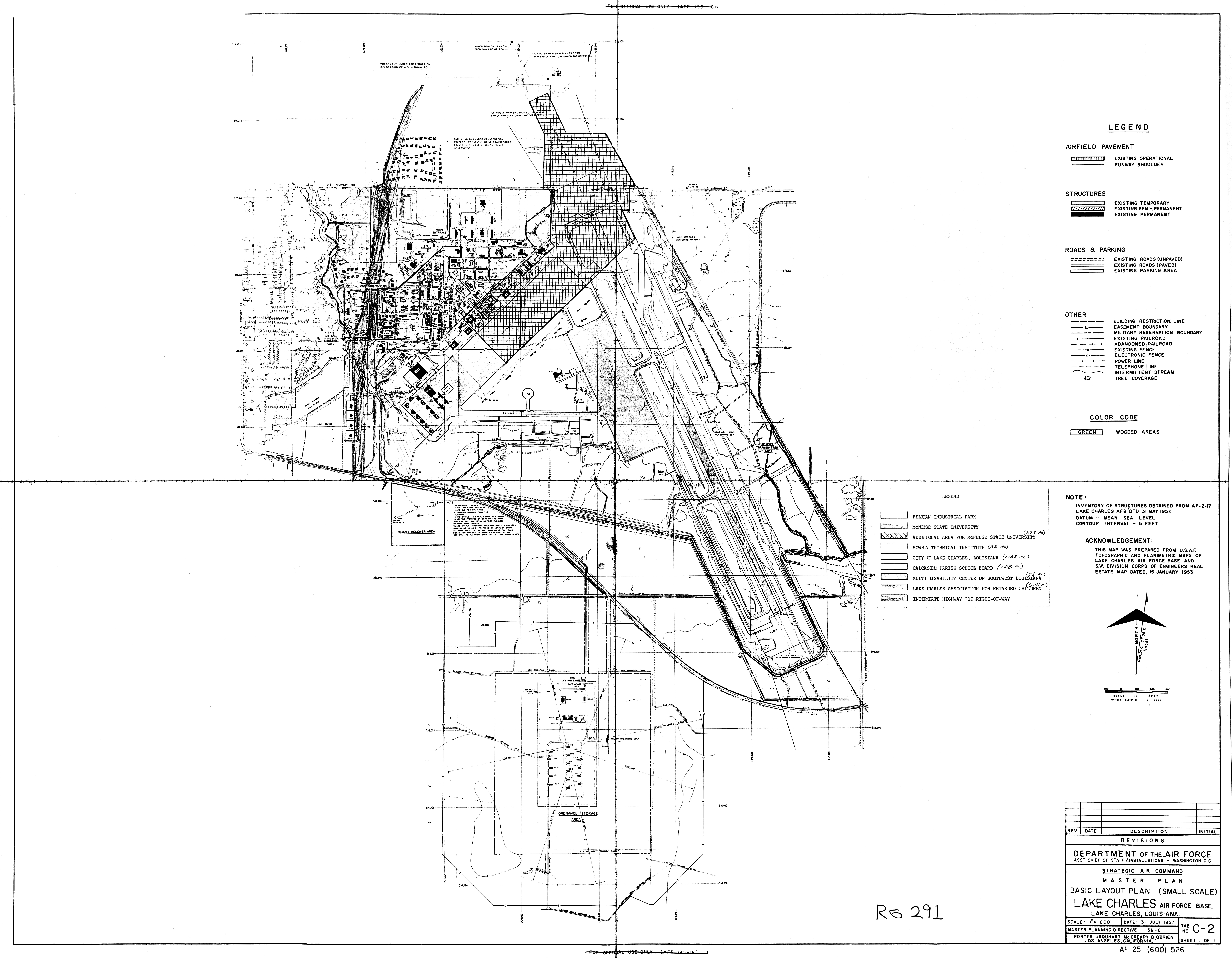 Chennault AFB LA, Basic Layout, 19570731. NARA-SW. Added February 2026