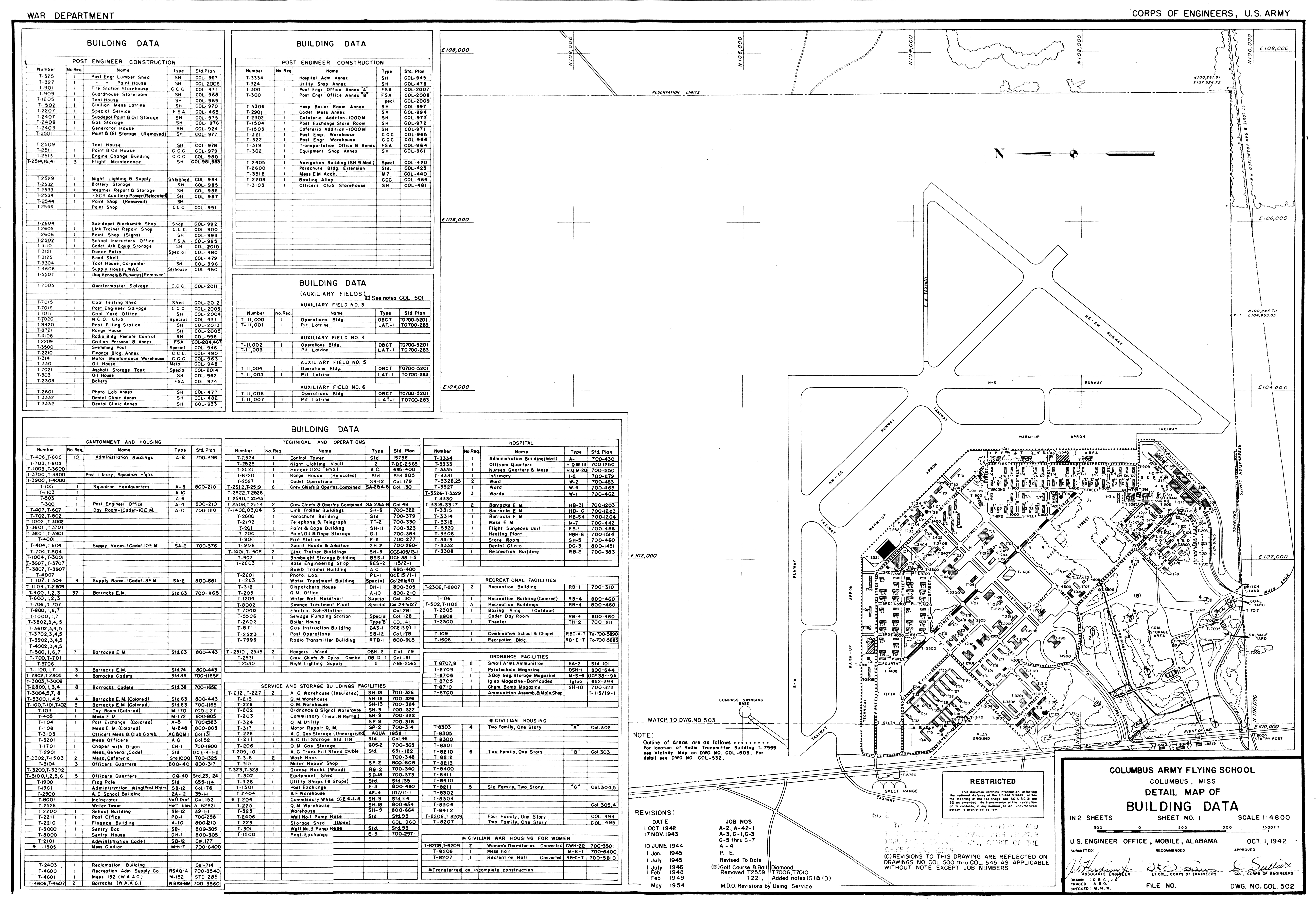 Air Force Plant No. 3 OK, Tulsa Aircraft Assembly Plant Airfield, 19440707. NARA-SW. Air Force Plant No. 48 (later Newark AFB) OH, Base Map, 19961228. FOIA. Aloe AAFld TX, Advanced Single Engine School, 19450302. NARA-SW.