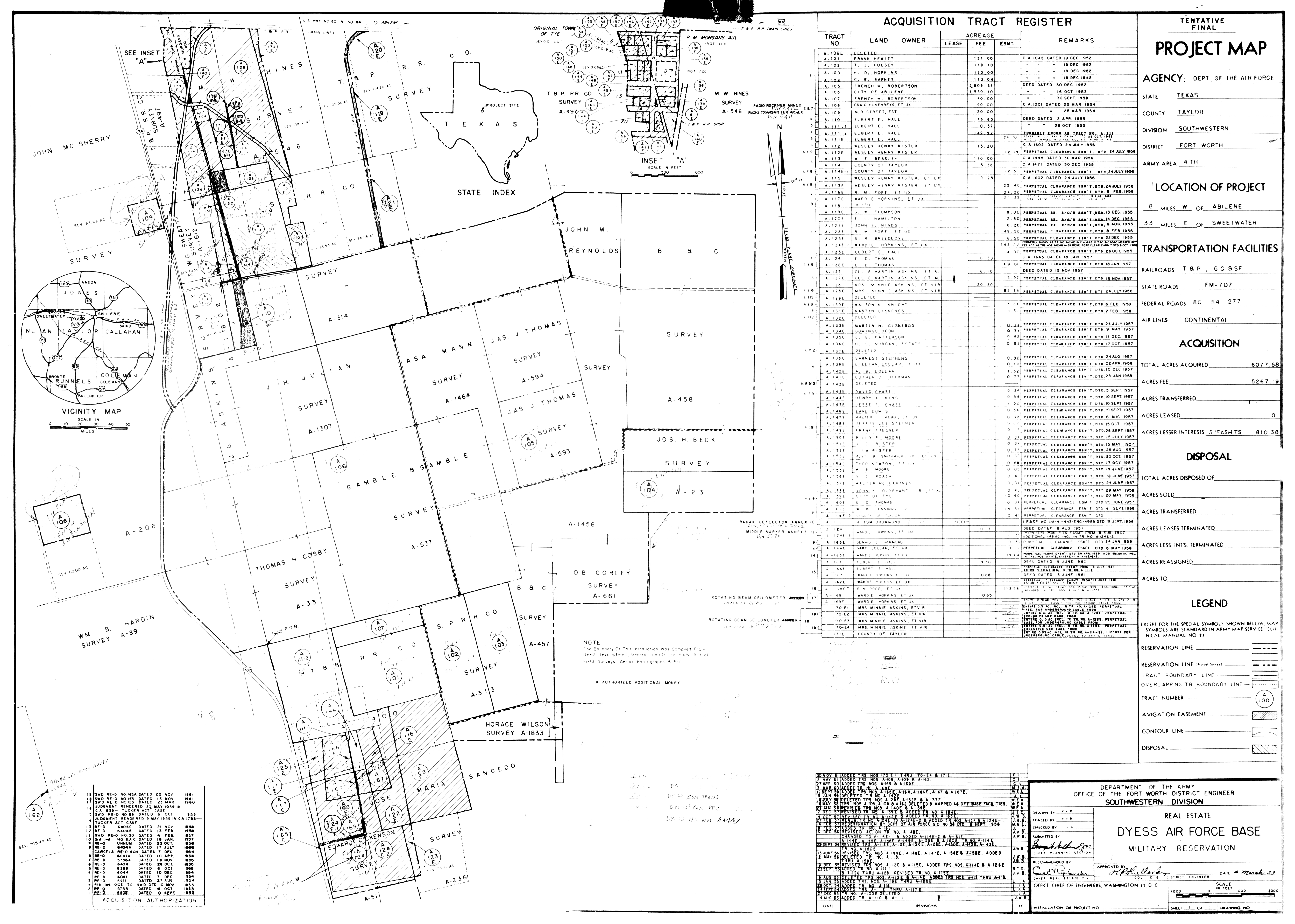 Dyess ILS OM Anx TX, Real Estate, 19720911. NARA-SW. Added February 2026 Dyess Recrn Anx 2 TX, Real Estate, 19580516. NARA-SW. Added February 2026 Dyess Small Arms Range Annex TX, Camp Barkeley NG Rg, 19701117. FOIA.
