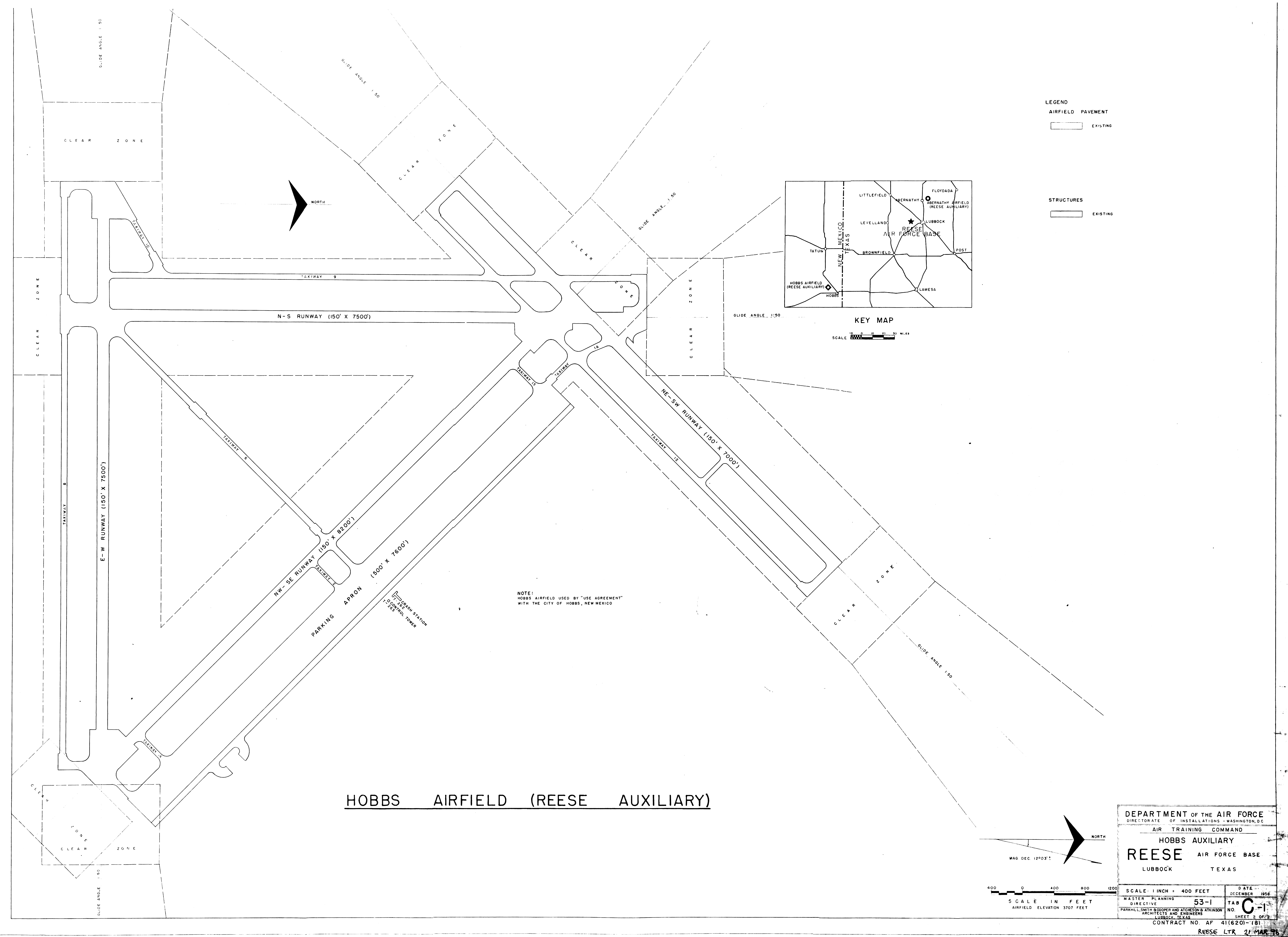 Hobbs AFB NM, Buildings Locations, 19440821. FOIA. Added February 2026