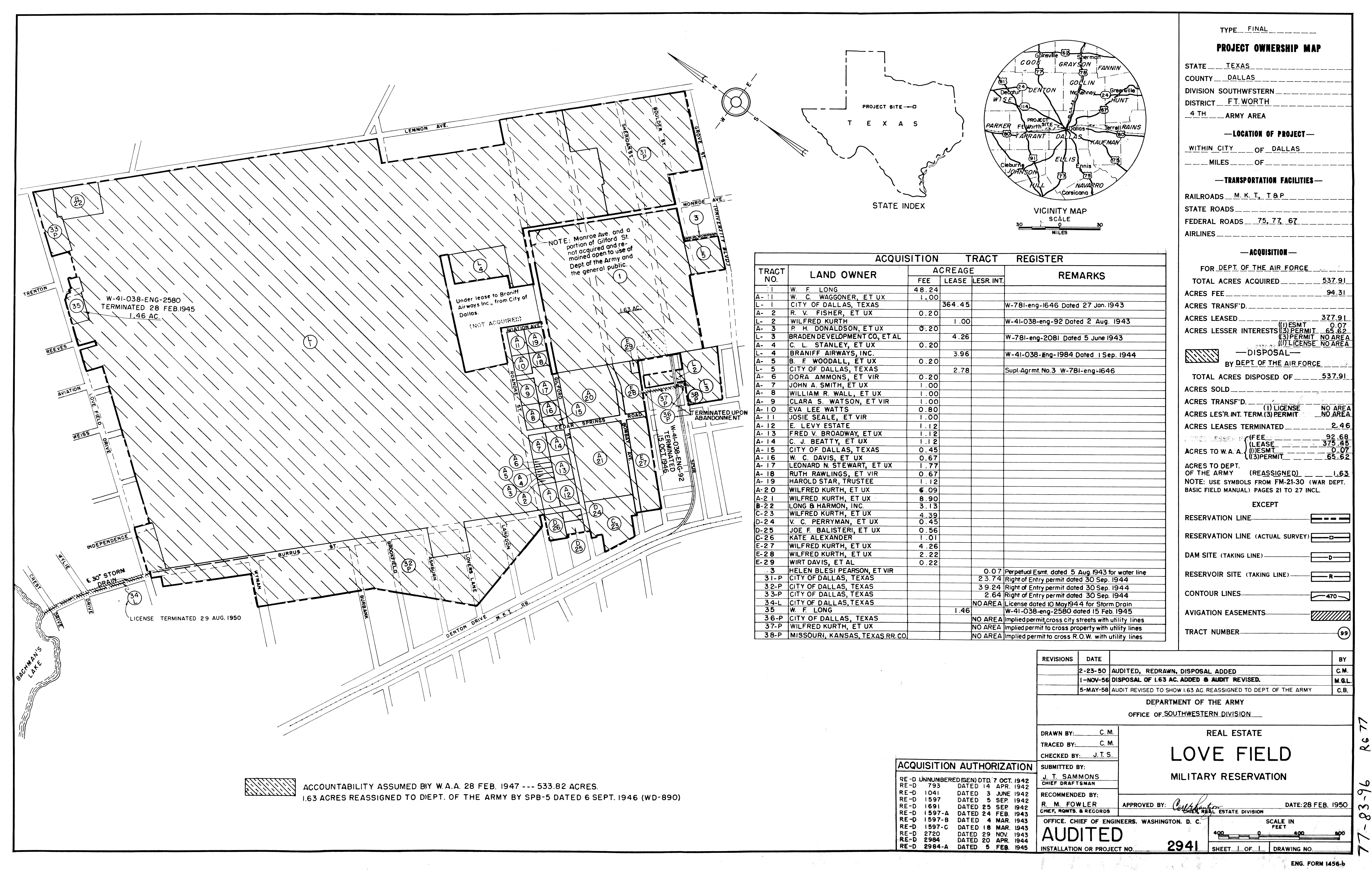 Love Field and AAF Mod Ctr No. 3 TX, Ownership, 19460701. NARA-SW. Added February 2026 Lufkin AFS TX, Real Estate, 19581128. NARA-SW. Added February 2026 MacDill AFB FL, Layout Details, 194001. FOIA.