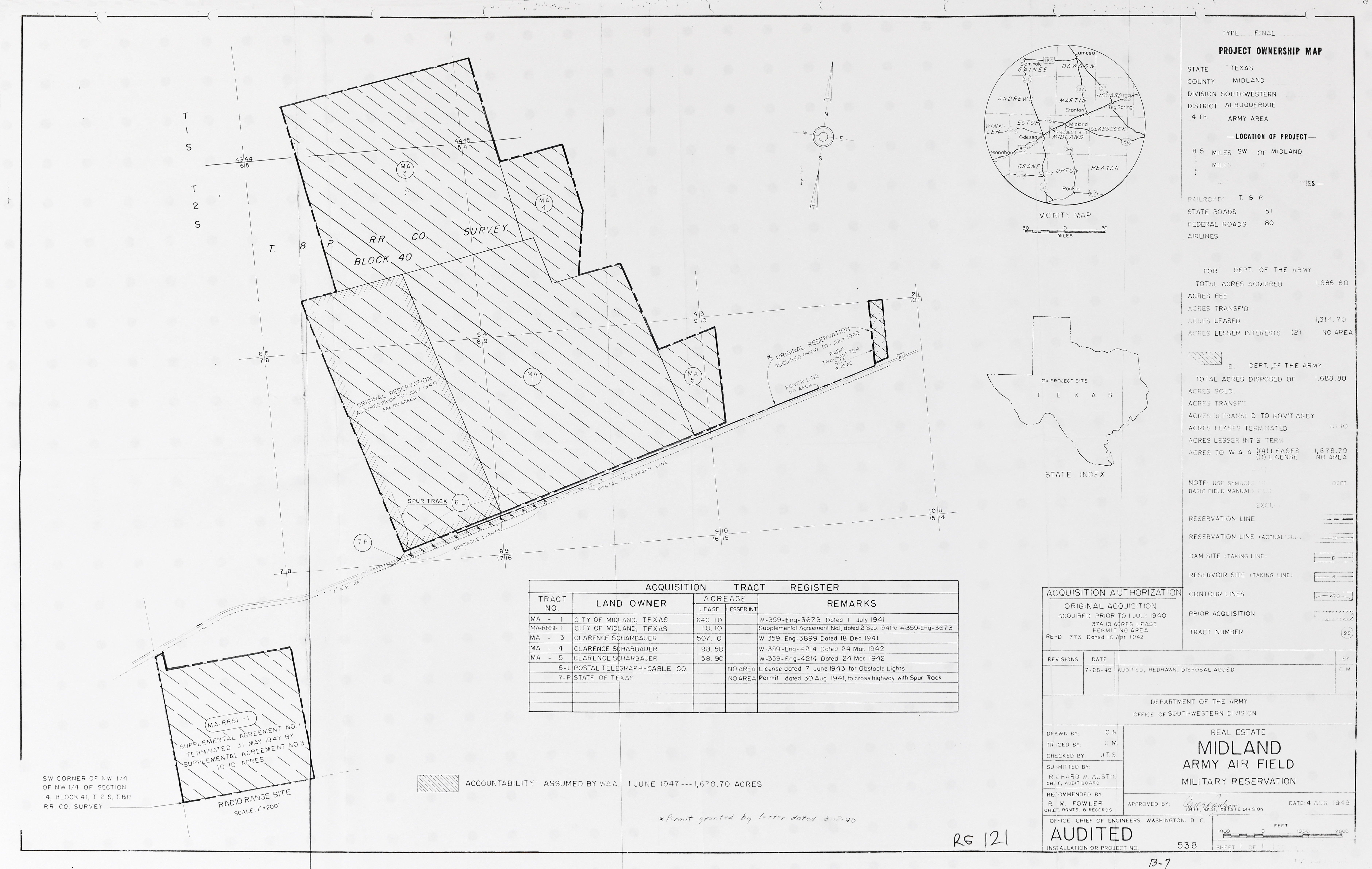 Webb Tng Anx TX, Real Estate, 19640728. NARA-SW. Woodward AAFld OK, Revised Layout, 19440915. NARA-SW. Yoakum Intermediate Field TX, Ownership, 19480922. NARA-SW.